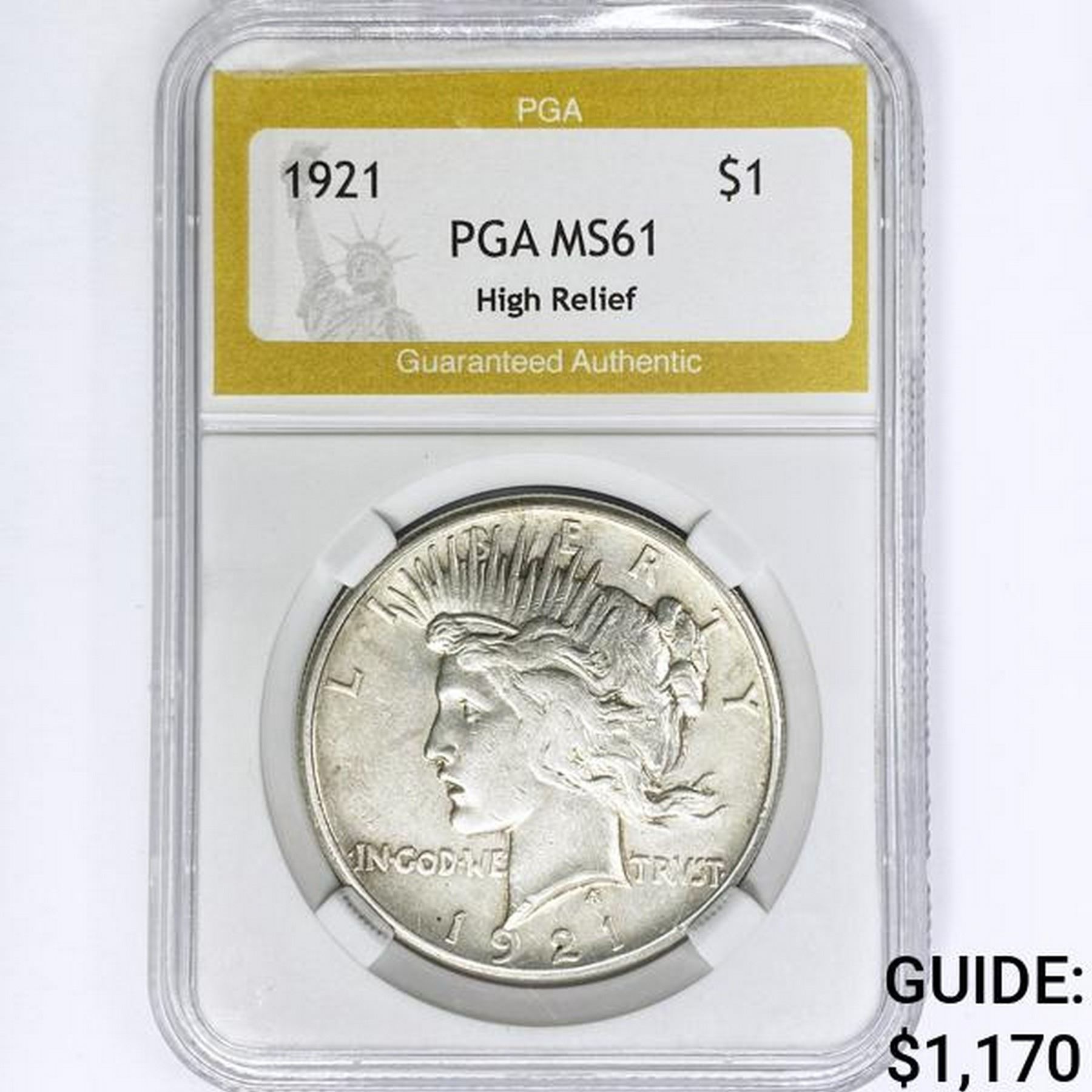 1921 Silver Peace Dollar PGA MS61 High Relief
