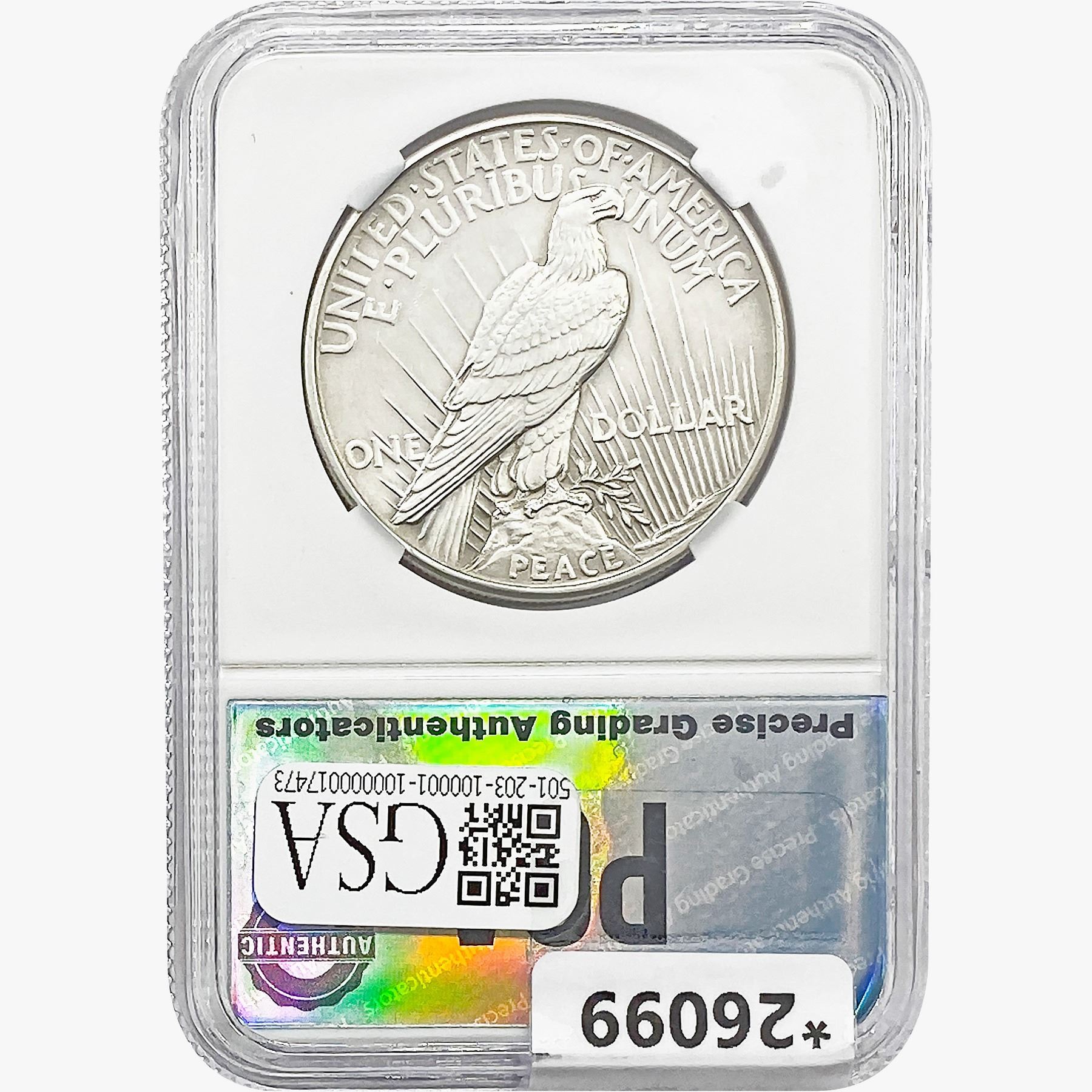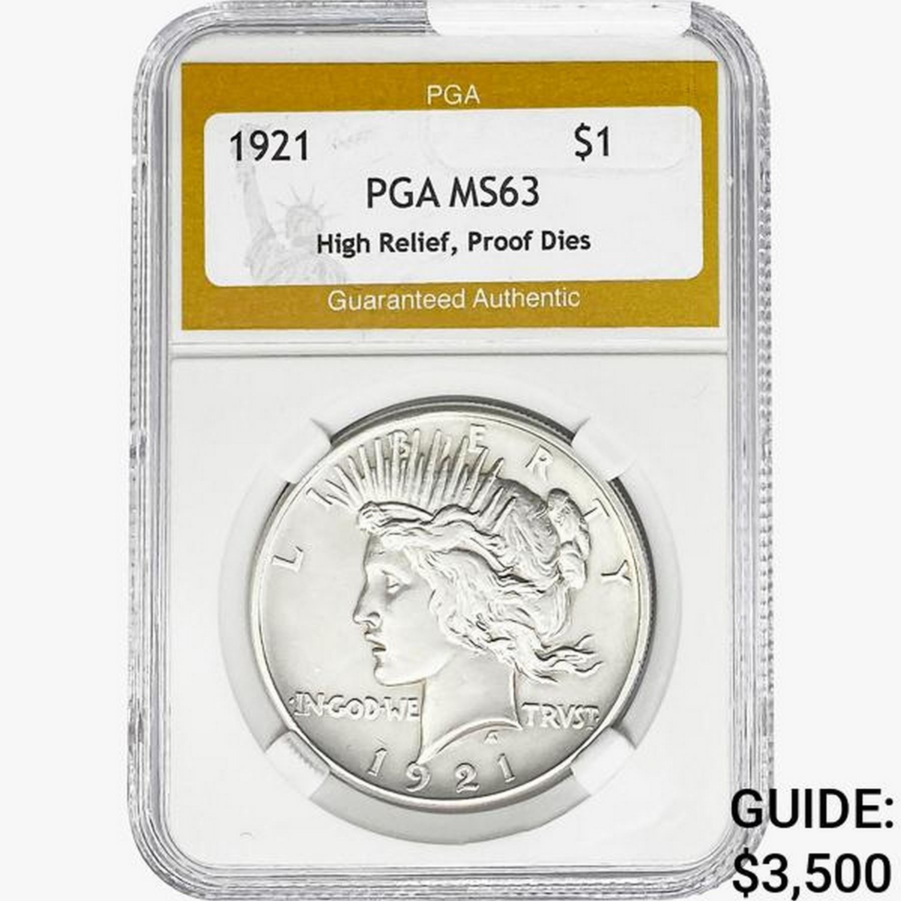 1921 Silver Peace Dollar PGA MS63 HR, Proof Dies
