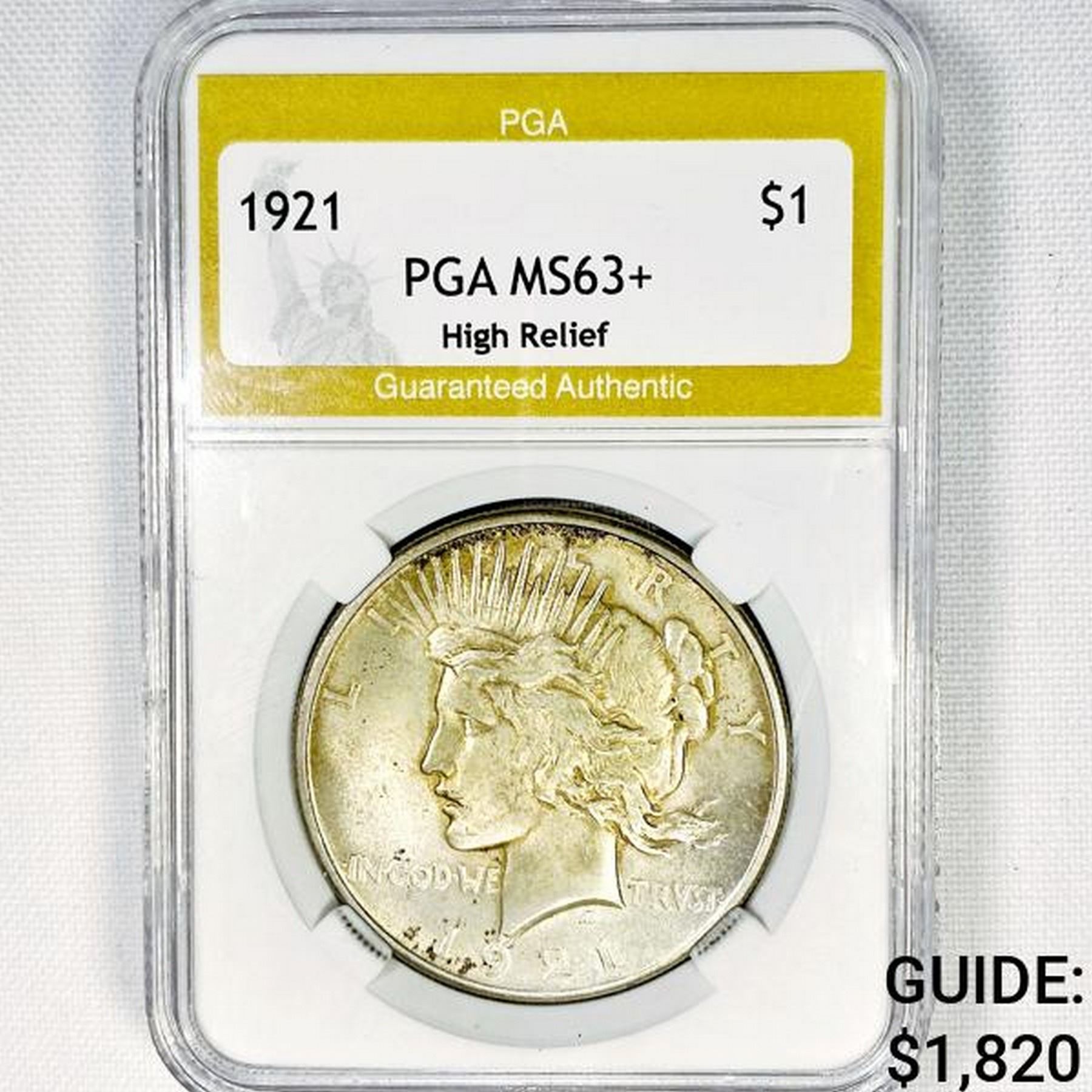 1921 Silver Peace Dollar PGA-MS63+ High Relief
