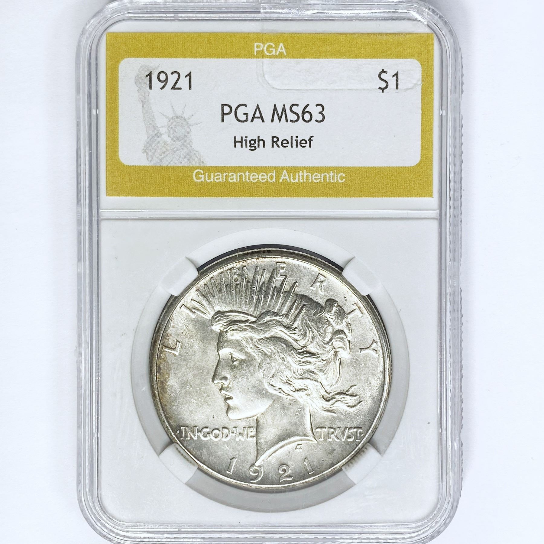 1921 Silver Peace Dollar PGA MS63 High Relief