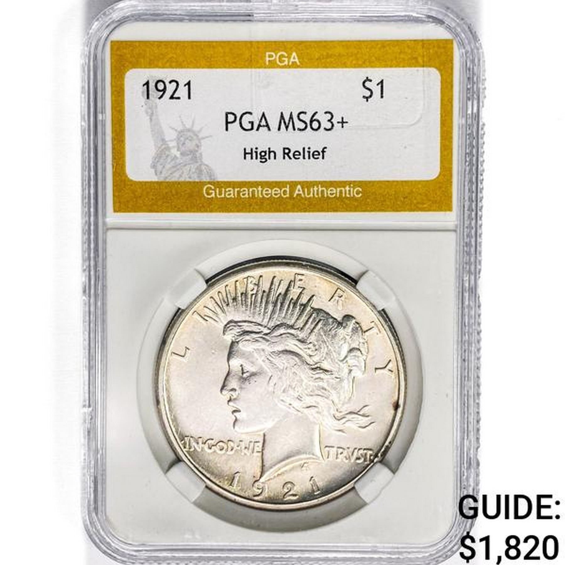 1921 Silver Peace Dollar PGA MS63+ High Relief