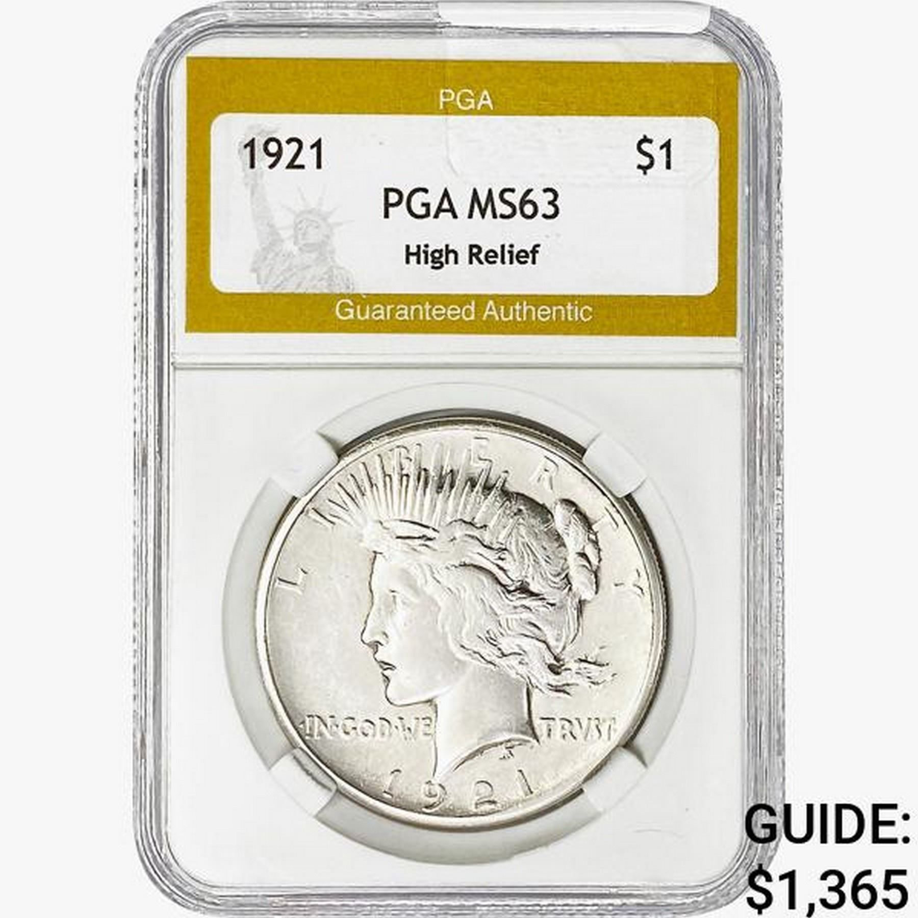 1921 Silver Peace Dollar PGA MS63 High Relief