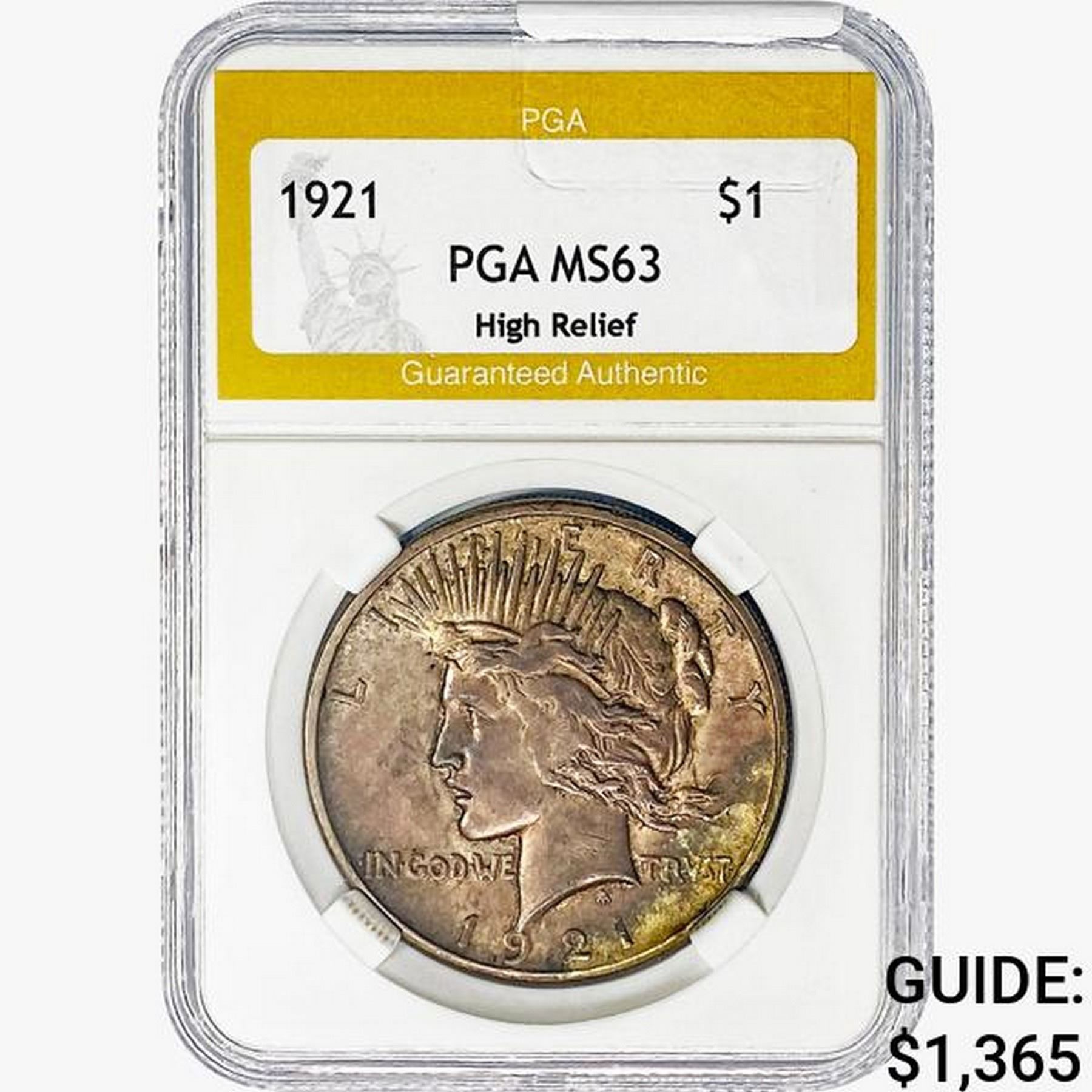 1921 Silver Peace Dollar PGA MS63 High Relief