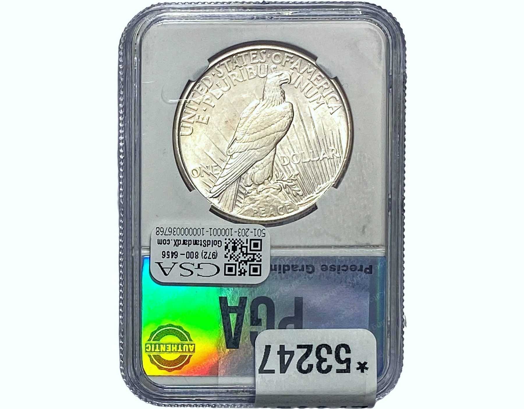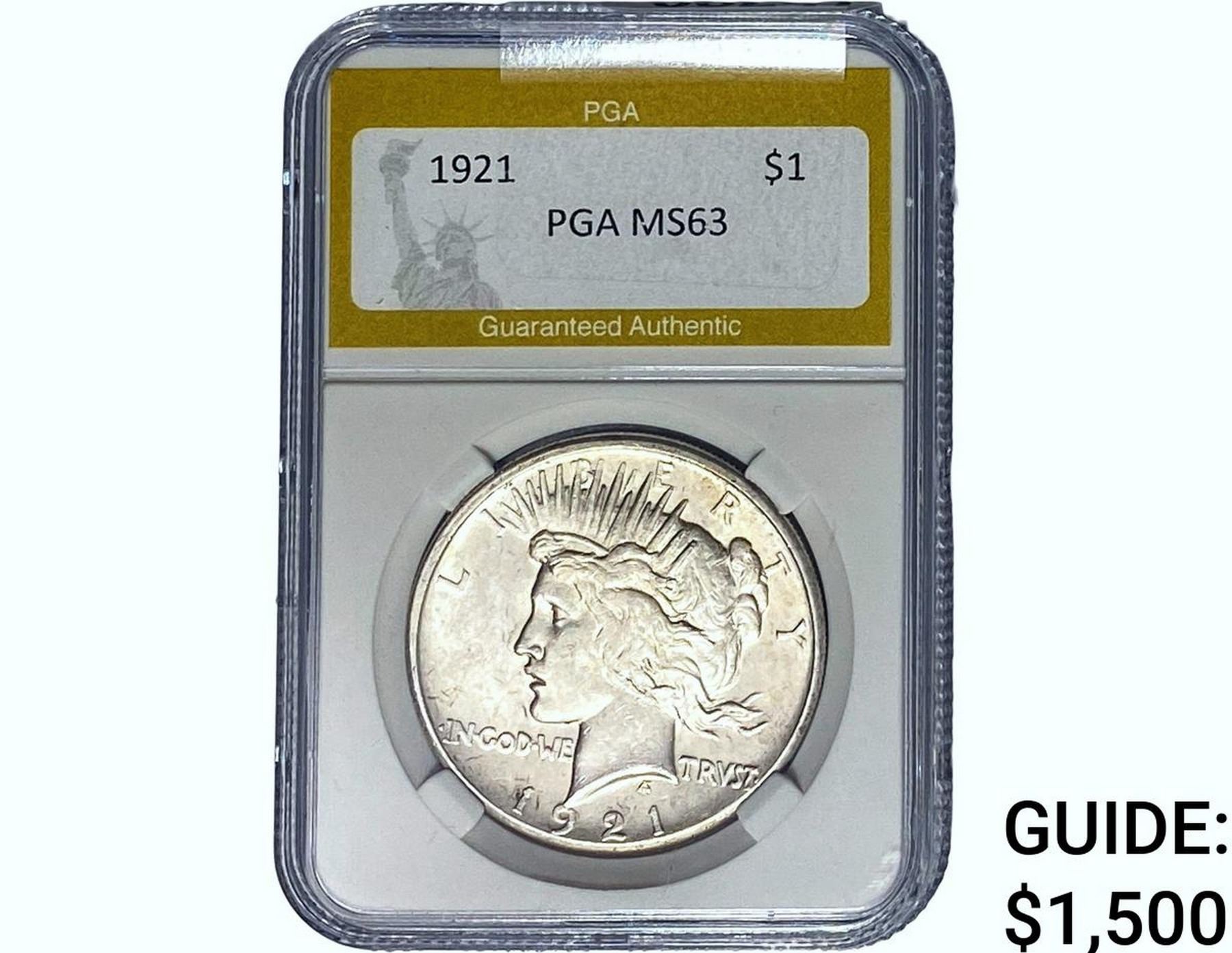 COINS AND CURRENCY LISTED IN GSA’S CATALOG AS GRADED AND ENCAPSULATED BY PCGS, NGC, ANACS, ICG, PCGS CURRENCY, PMG, PCGS BANKNOTE GRADING, CMC OR ANY OTHER THIRD-PARTY GRADING SERVICE ARE LIKEWISE SOLD “AS-IS” EXCEPT AS EXPRESSLY SET FORTH HEREIN. ALL THIRD-PARTY GRADING SERVICE GUARANTEES, INCLUDING AUTHENTICITY, ARE THE SOLE RESPONSIBILITY OF THE THIRD-PARTY GRADING SERVICE AND NOT WARRANTIES OR GUARANTEES OF GSA. BIDDERS SHOULD CONTACT THESE THIRD-PARTY GRADING SERVICES DIRECTLY WITH RESPECT TO ANY CLAIMS OR QUESTIONS THEY MAY HAVE CONCERNING THEIR GUARANTEES AND WARRANTIES. BIDDERS ACKNOWLEDGE AND AGREE THAT AUCTIONEER IS NOT BOUND BY OR LIABLE FOR ANY OPINION OR CERTIFICATION BY ANY THIRD-PARTY GRADING SERVICE. REMOVAL OF A PRODUCT FROM ITS PROTECTIVE CASING OR HOLDER OR ALTERATION OF ANY COIN HOLDER WAIVES ALL RIGHTS CONCERNING THE PRODUCT CONTAINED THEREIN.