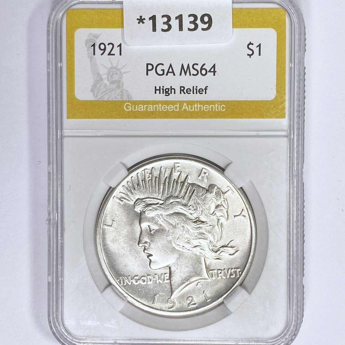 1921 Silver Peace Dollar PGA MS64 High Relief
