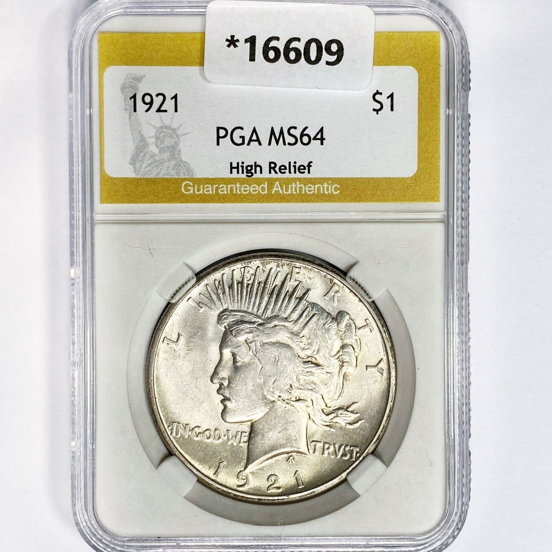 1921 Silver Peace Dollar PGA MS64 High Relief