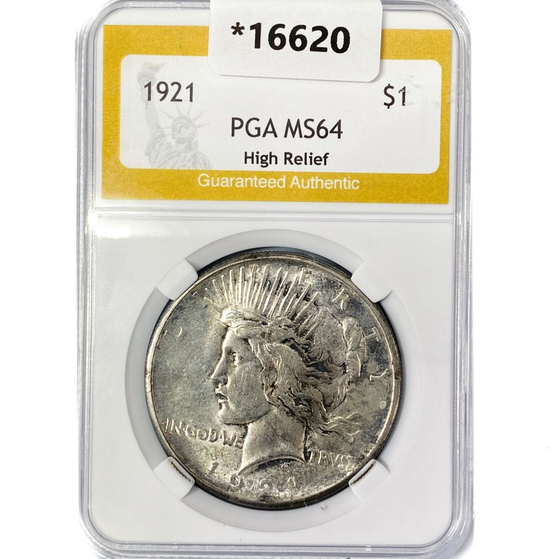1921 Silver Peace Dollar PGA MS64 High Relief