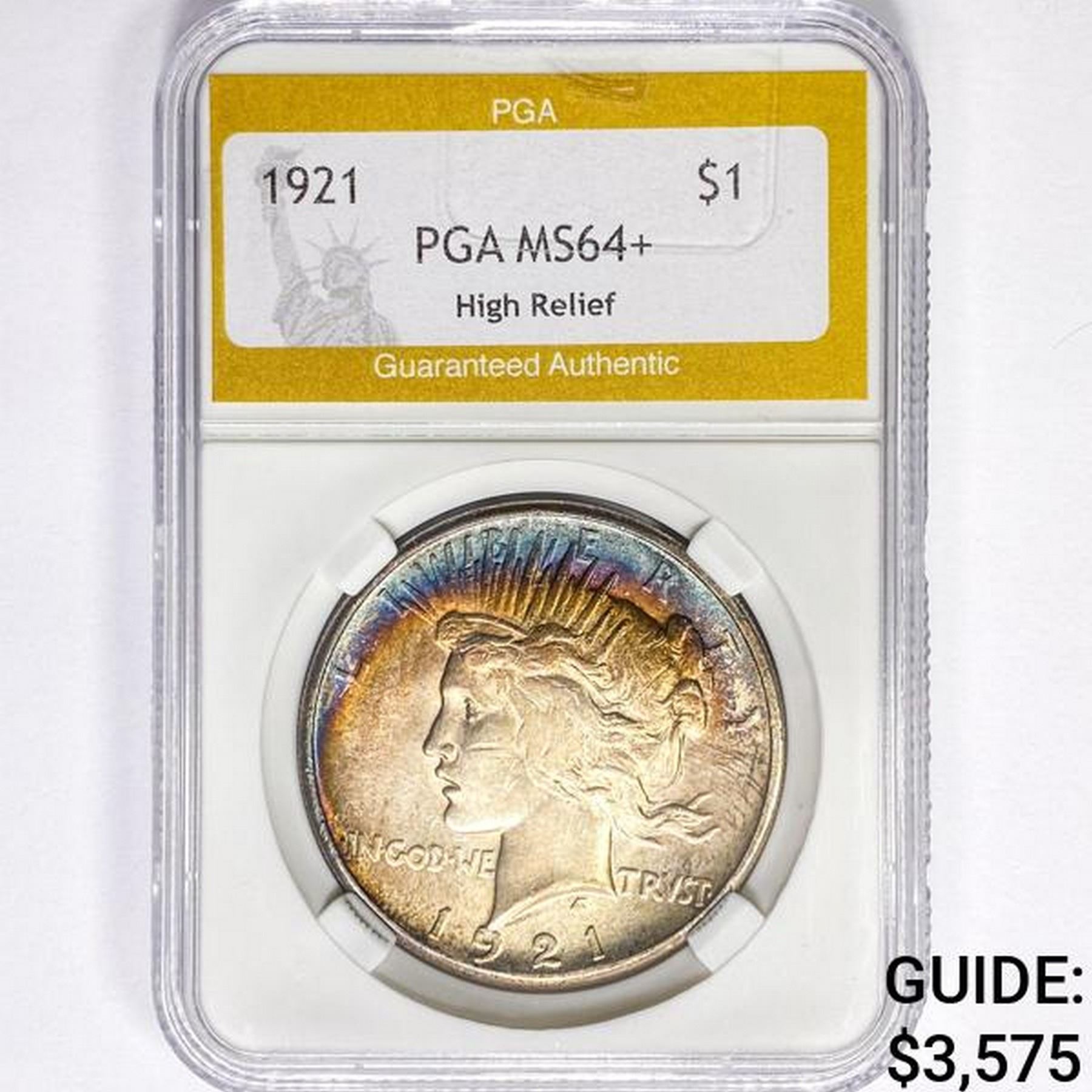 1921 Silver Peace Dollar PGA MS64+ High Relief