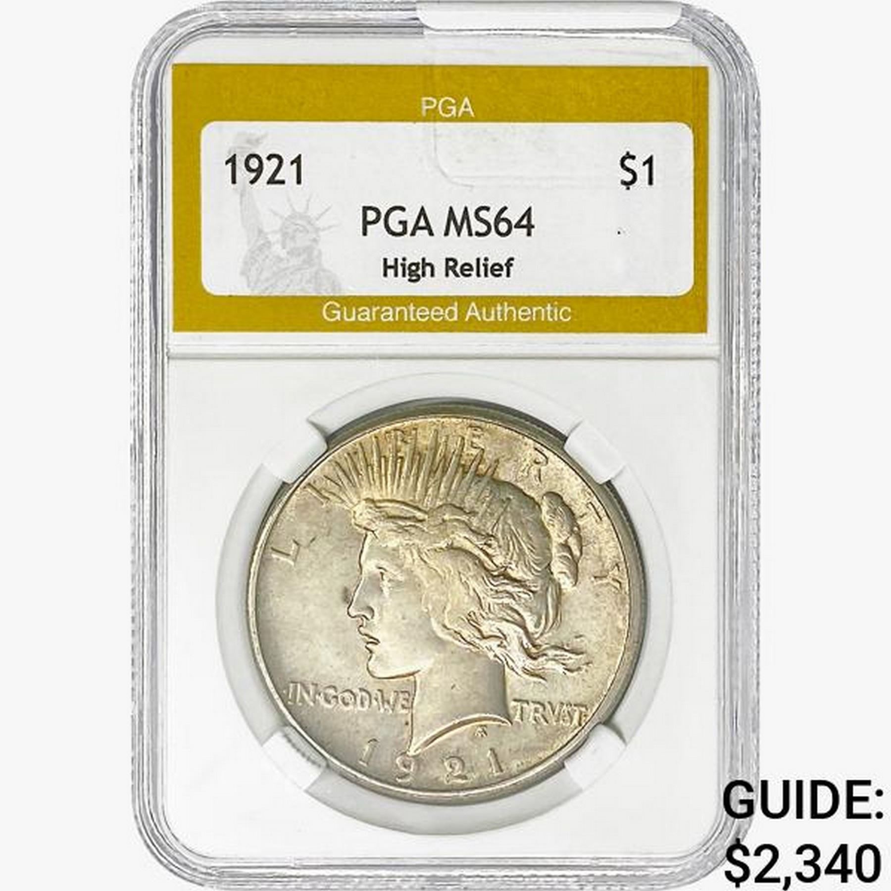1921 Silver Peace Dollar PGA MS64 High Relief