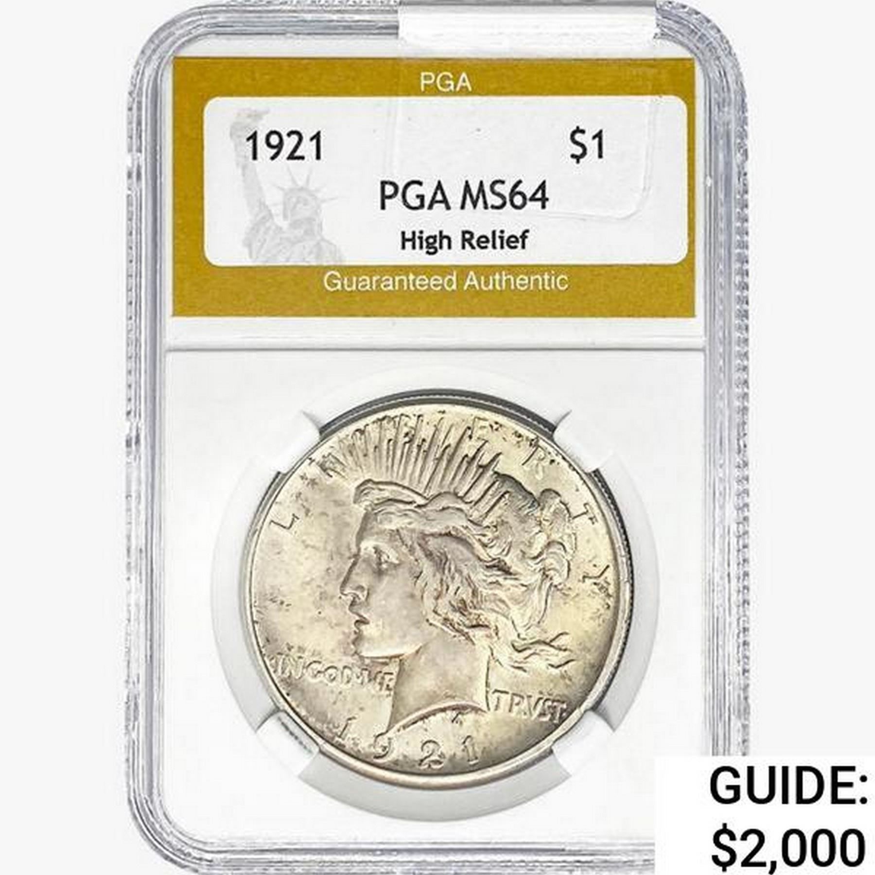 1921 Silver Peace Dollar PGA MS64 High Relief