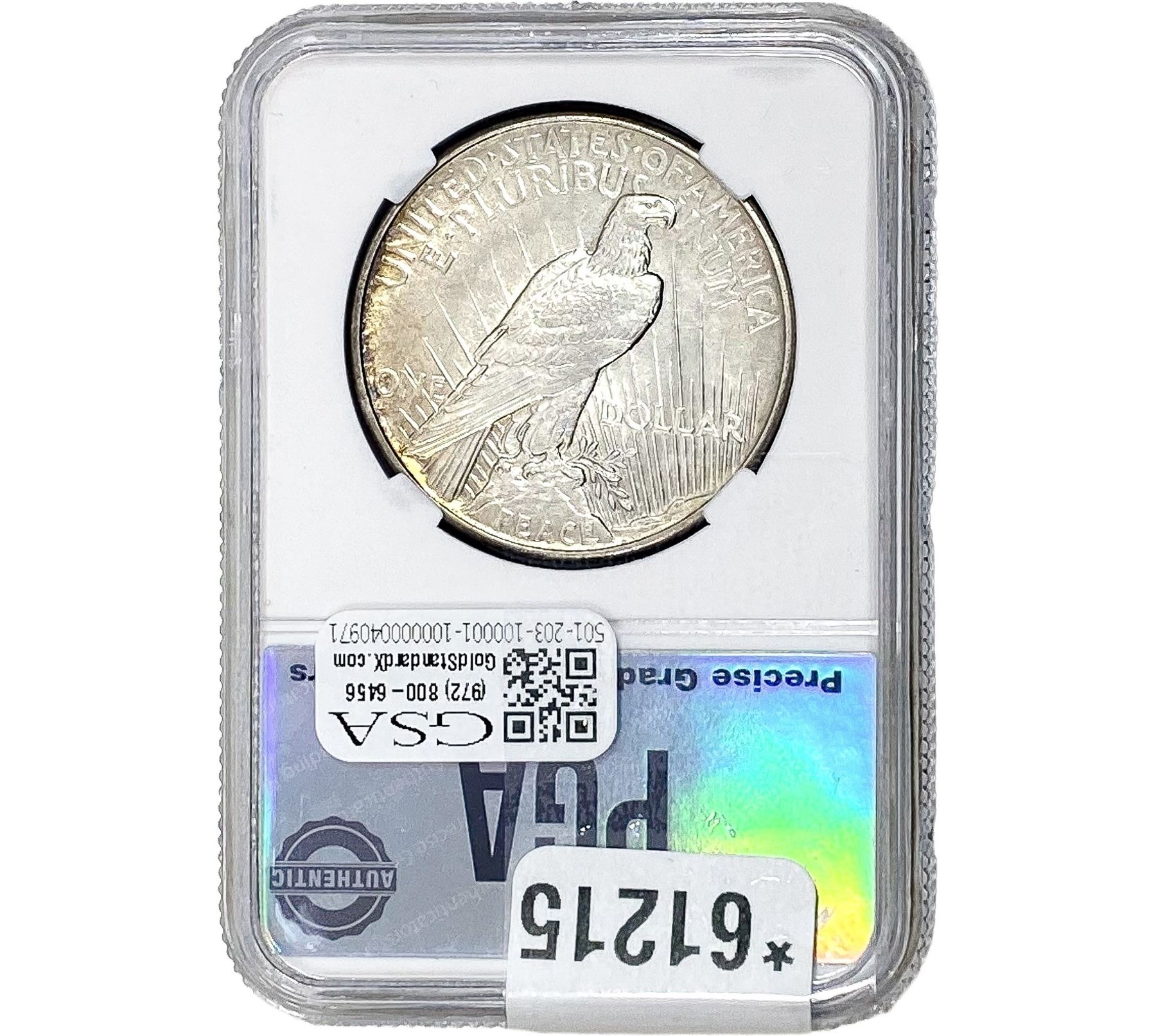 COINS AND CURRENCY LISTED IN GSA’S CATALOG AS GRADED AND ENCAPSULATED BY PCGS, NGC, ANACS, ICG, PCGS CURRENCY, PMG, PCGS BANKNOTE GRADING, CMC OR ANY OTHER THIRD-PARTY GRADING SERVICE ARE LIKEWISE SOLD “AS-IS” EXCEPT AS EXPRESSLY SET FORTH HEREIN. ALL THIRD-PARTY GRADING SERVICE GUARANTEES, INCLUDING AUTHENTICITY, ARE THE SOLE RESPONSIBILITY OF THE THIRD-PARTY GRADING SERVICE AND NOT WARRANTIES OR GUARANTEES OF GSA. BIDDERS SHOULD CONTACT THESE THIRD-PARTY GRADING SERVICES DIRECTLY WITH RESPECT TO ANY CLAIMS OR QUESTIONS THEY MAY HAVE CONCERNING THEIR GUARANTEES AND WARRANTIES. BIDDERS ACKNOWLEDGE AND AGREE THAT AUCTIONEER IS NOT BOUND BY OR LIABLE FOR ANY OPINION OR CERTIFICATION BY ANY THIRD-PARTY GRADING SERVICE. REMOVAL OF A PRODUCT FROM ITS PROTECTIVE CASING OR HOLDER OR ALTERATION OF ANY COIN HOLDER WAIVES ALL RIGHTS CONCERNING THE PRODUCT CONTAINED THEREIN.