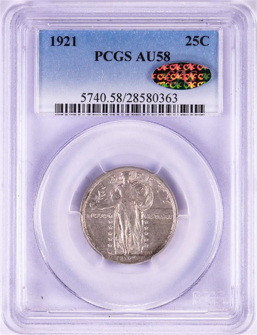 One 1921 Standing Liberty Quarter Coin PCGS AU58 CAC. PCGS Graded.