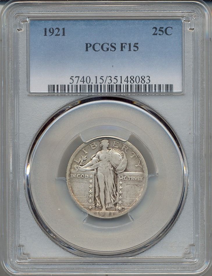 One 1921 Standing Liberty Quarter Coin PCGS F15.