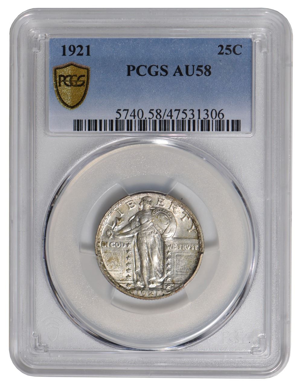 One 1921 Standing Liberty Quarter PCGS AU58.