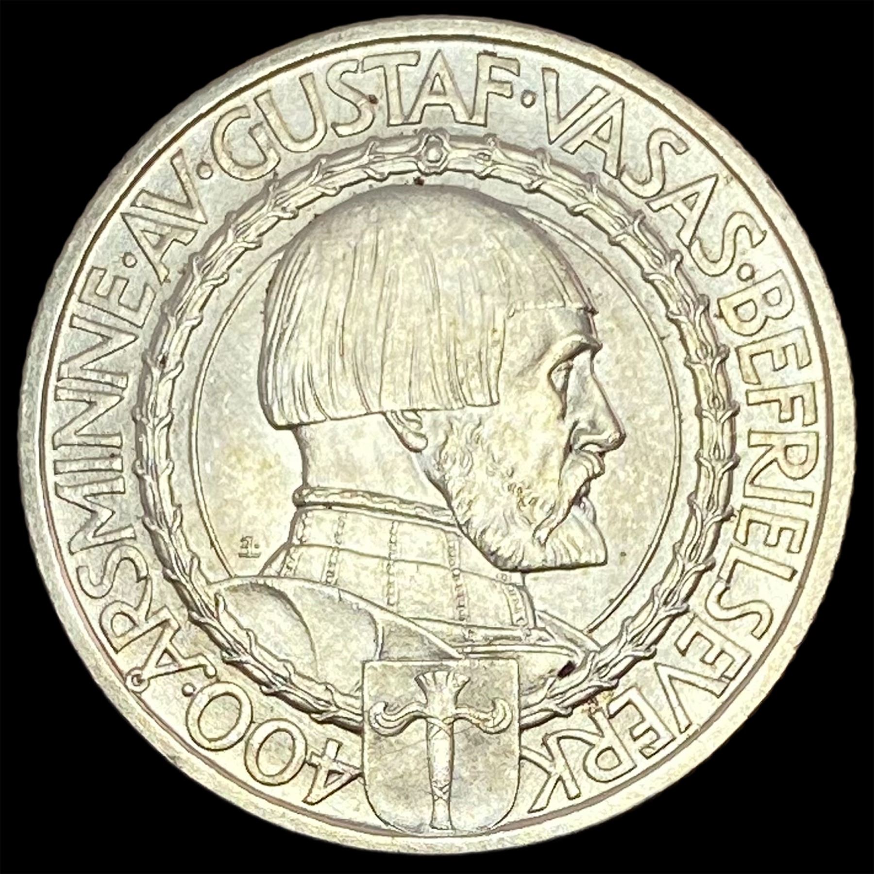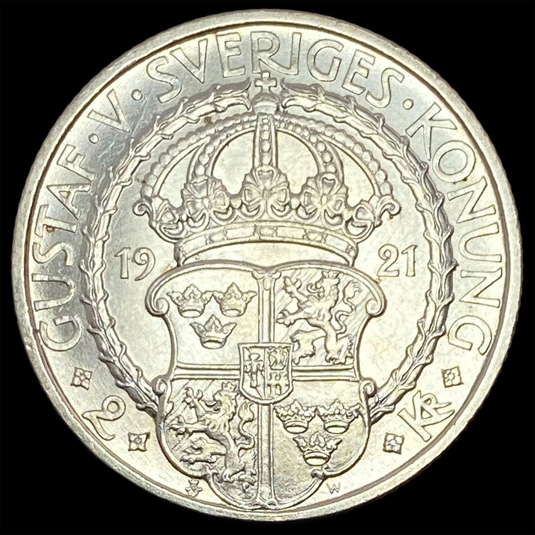 1921 Sweden Gustaf Vasa Silver 2 Kroner UNCIRCULATED