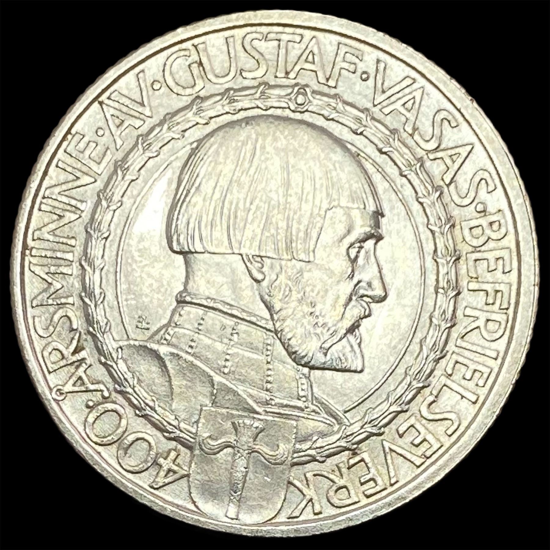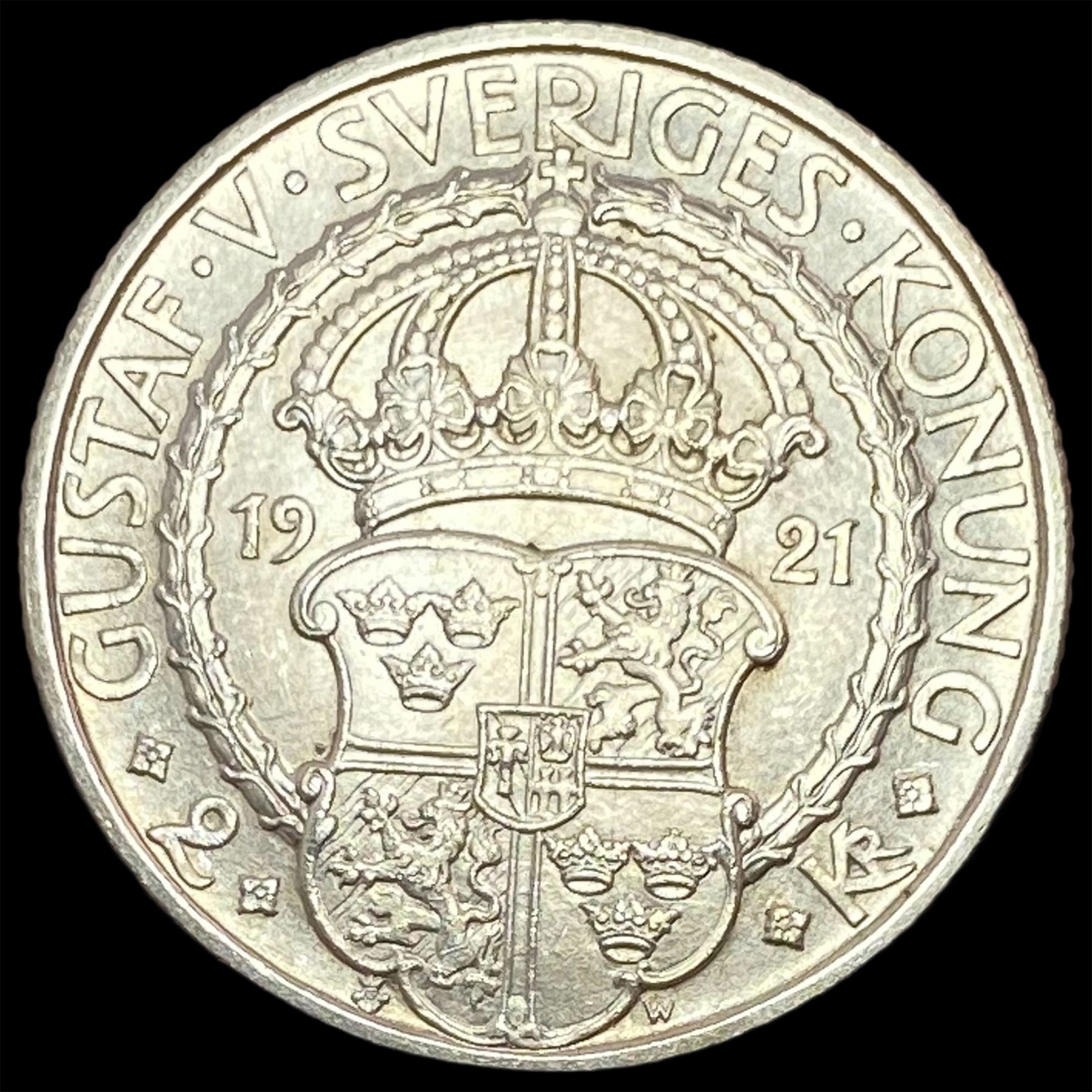 1921 Sweden Gustaf Vasa Silver 2 Kroner UNCIRCULATED