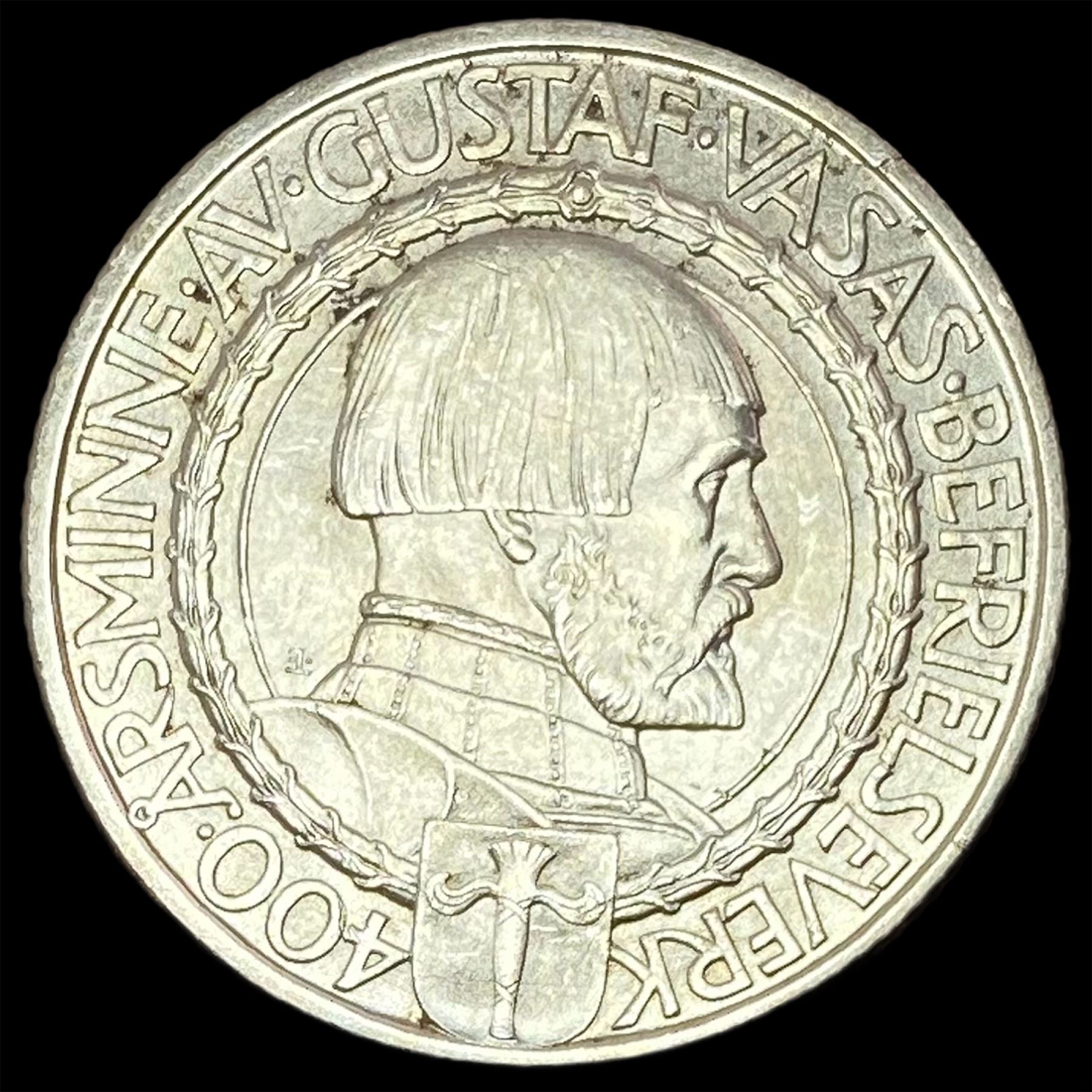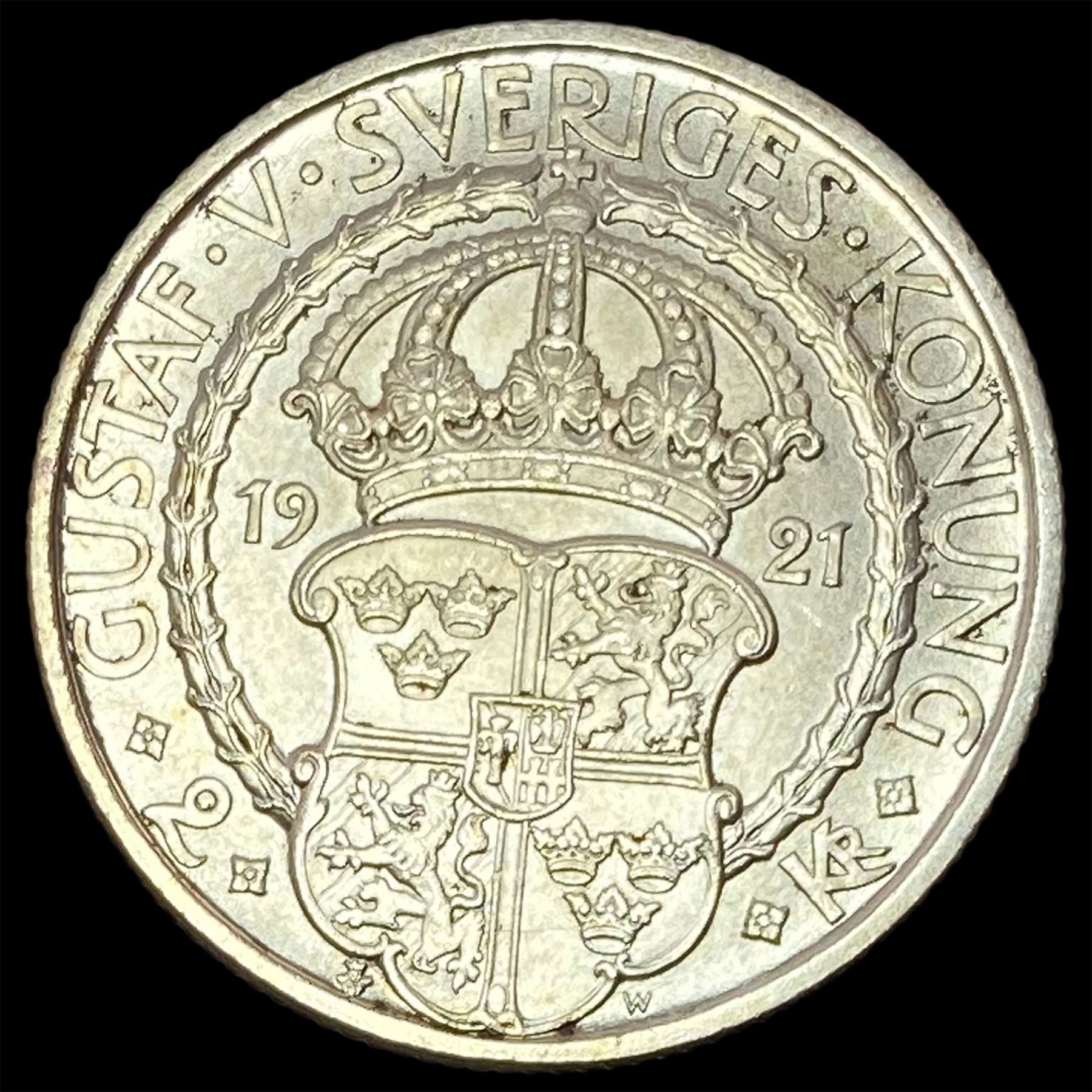 1921 Sweden Gustaf Vasa Silver 2 Kroner UNCIRCULATED