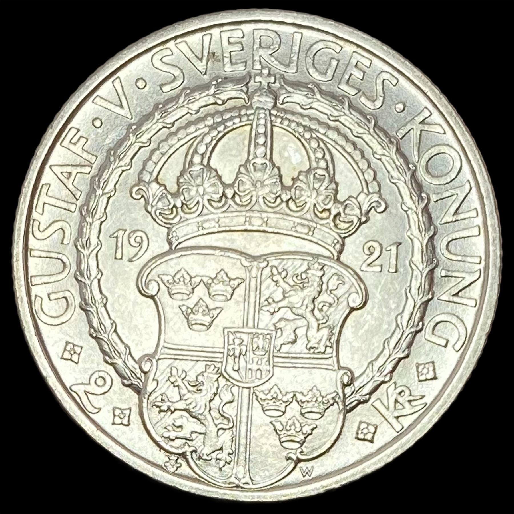 1921 Sweden Gustaf Vasa Silver 2 Kroner UNCIRCULATED