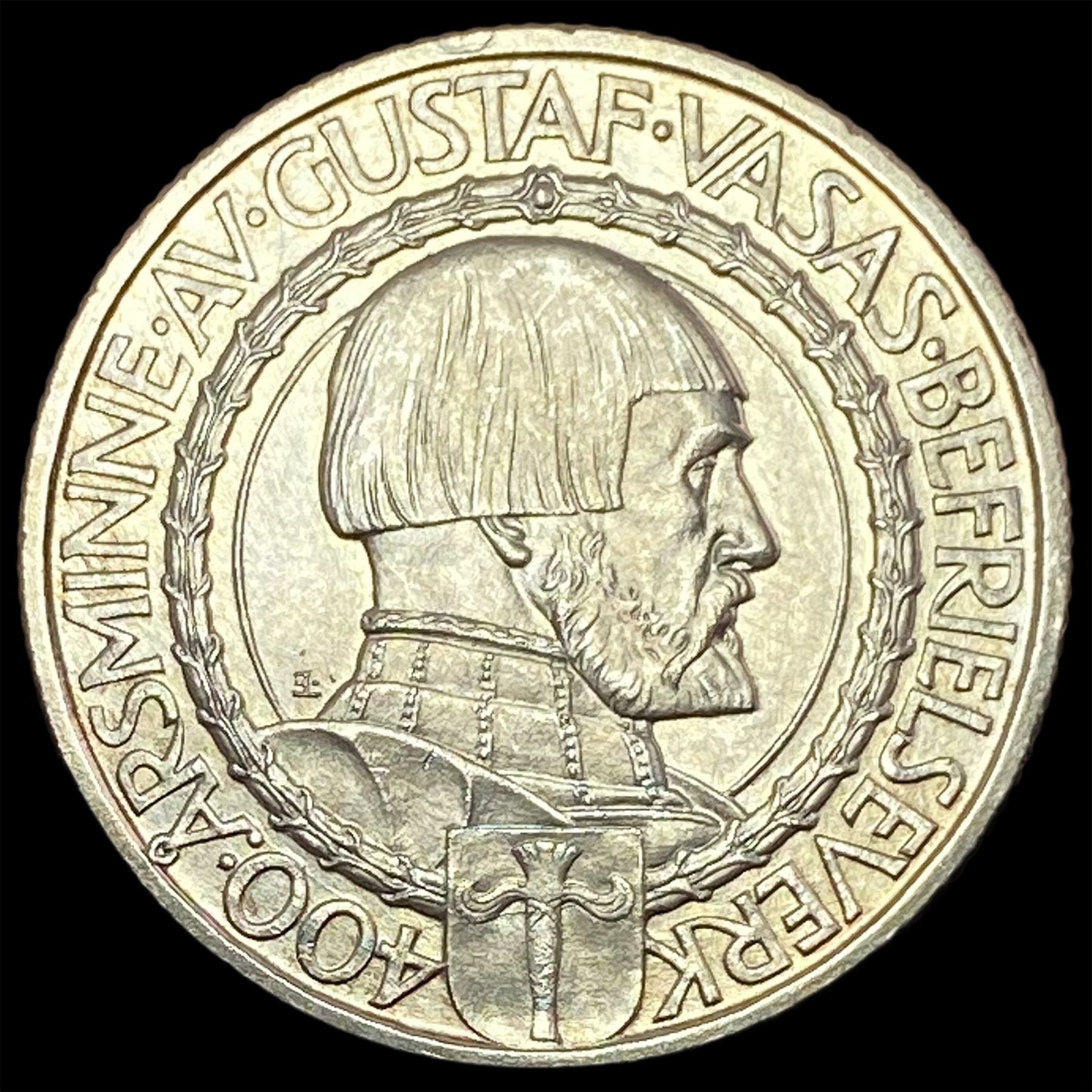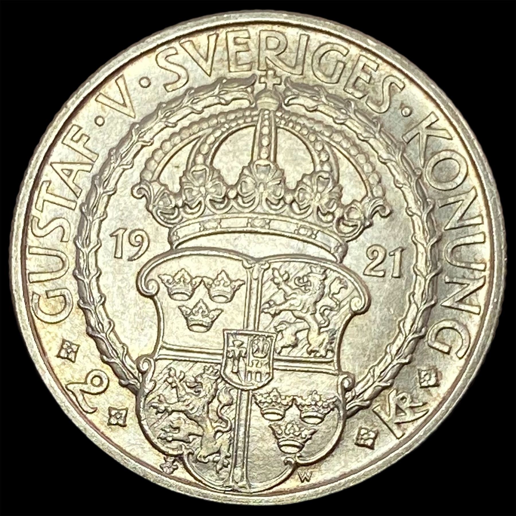 1921 Sweden Gustaf Vasa Silver 2 Kroner UNCIRCULATED
