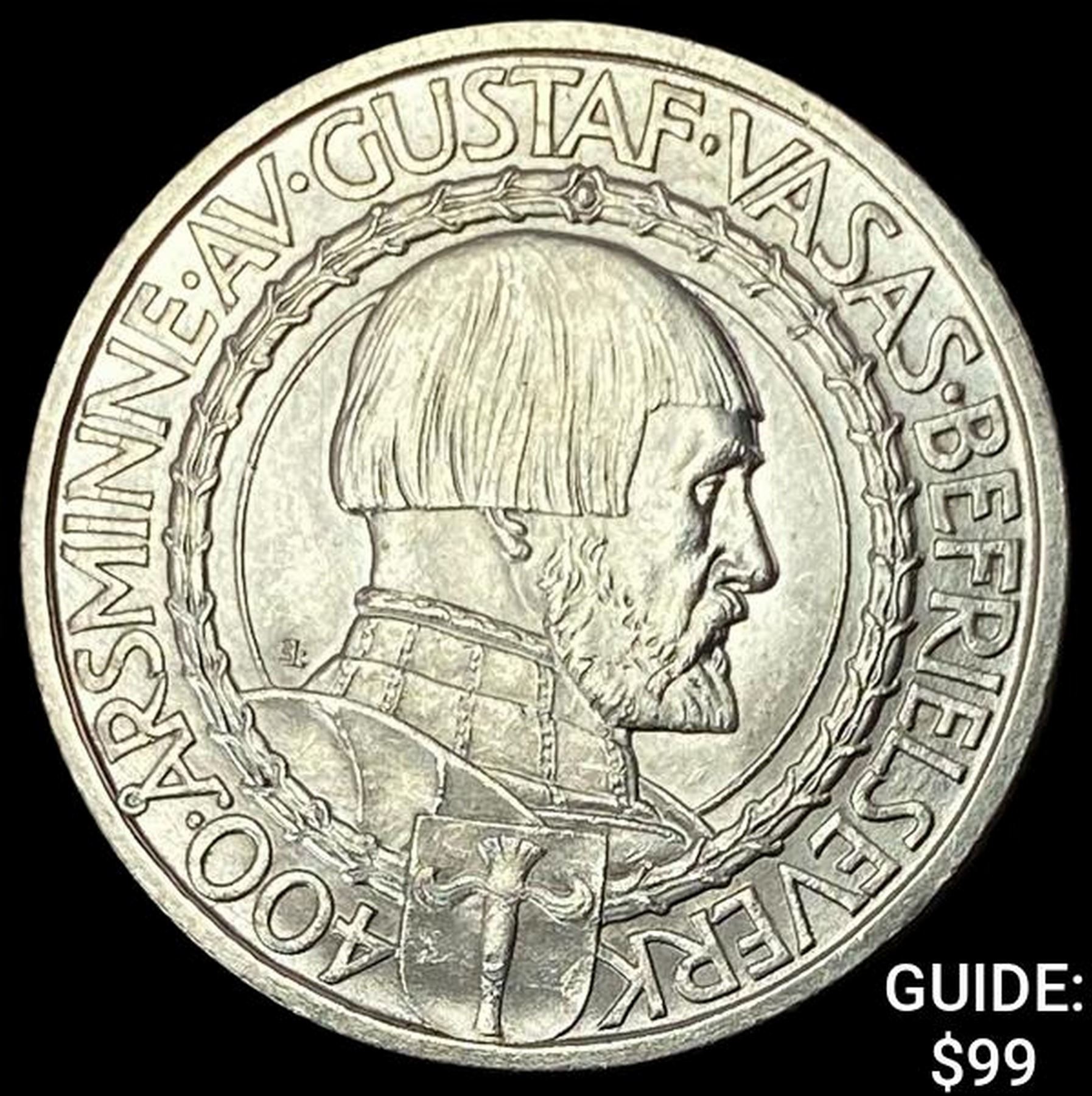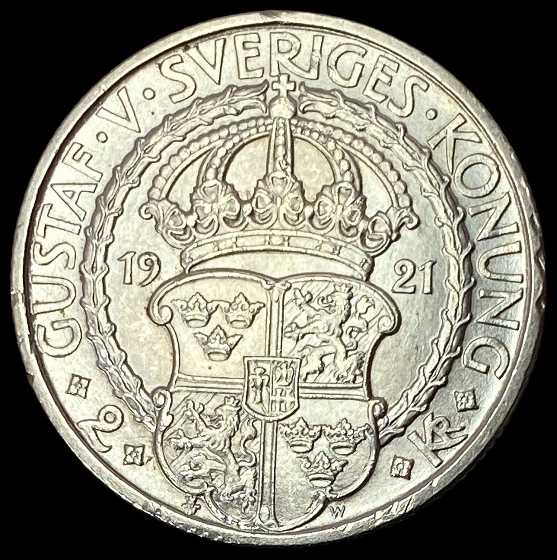 1921 Sweden Silver 2 Kroner Gustaf Vasa UNCIRCULATED