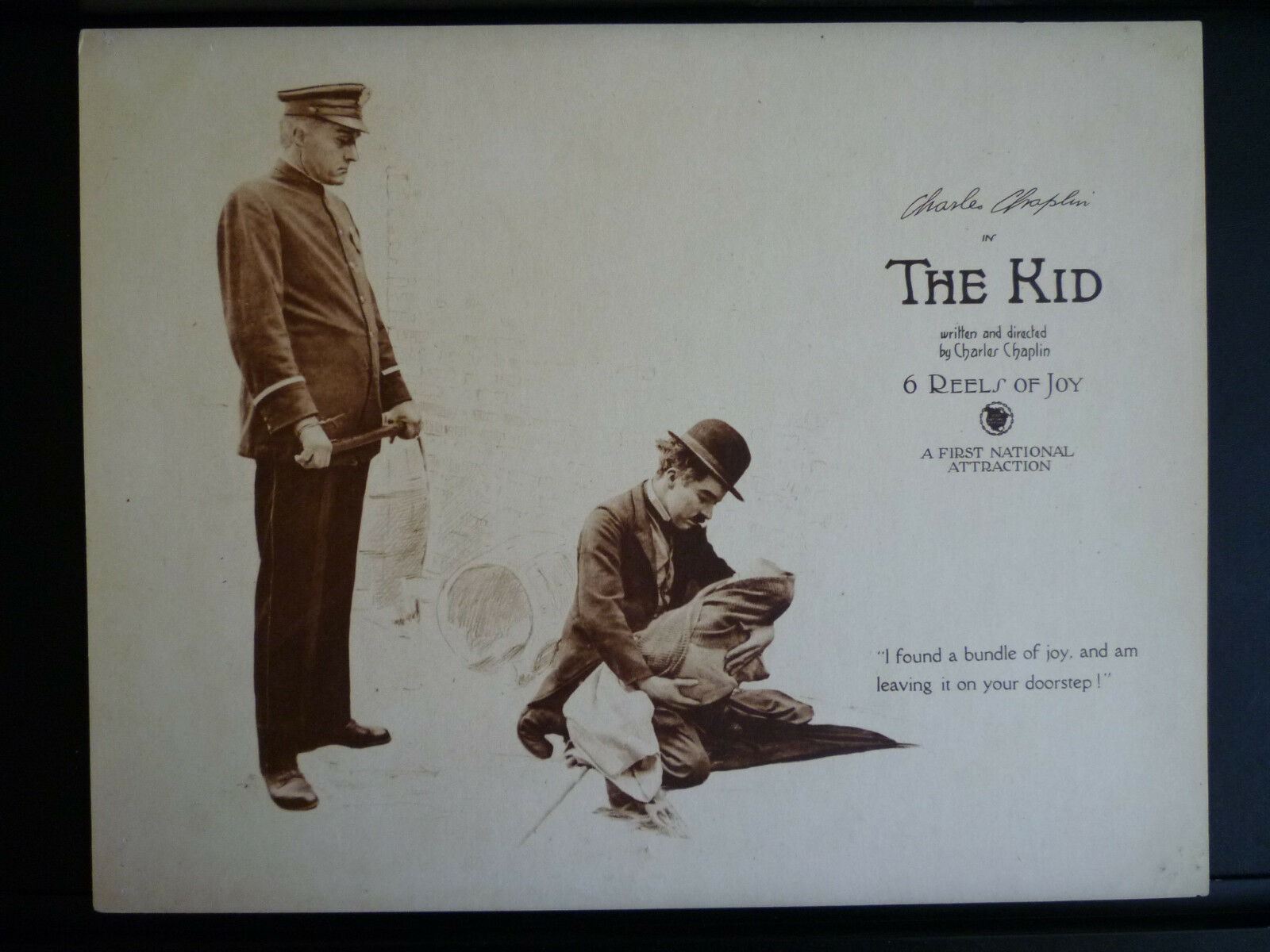 Original vintage lobby card (aprox. 11" by 14") for The Kid / 1921 / Silent / Charles Chaplin + Jackie Coogan / First National.
