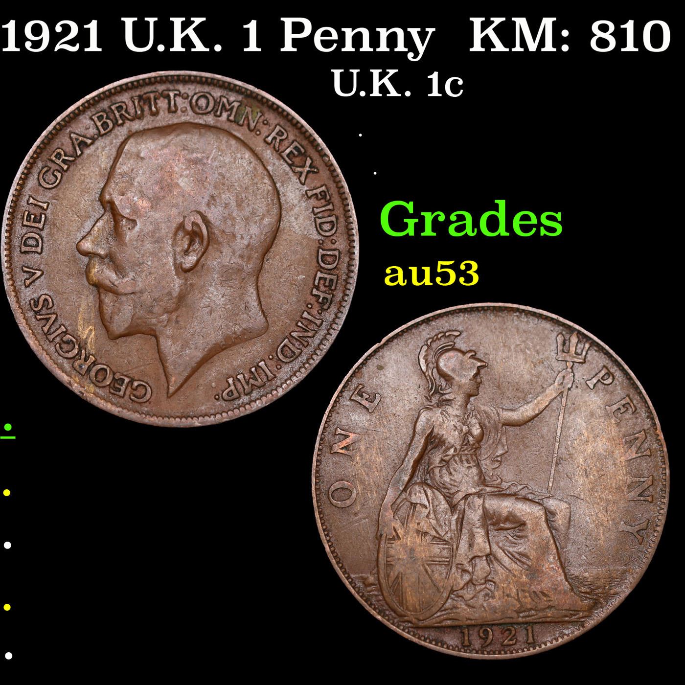 1921 U.K. 1 Penny KM: 810 Grades Select AU.