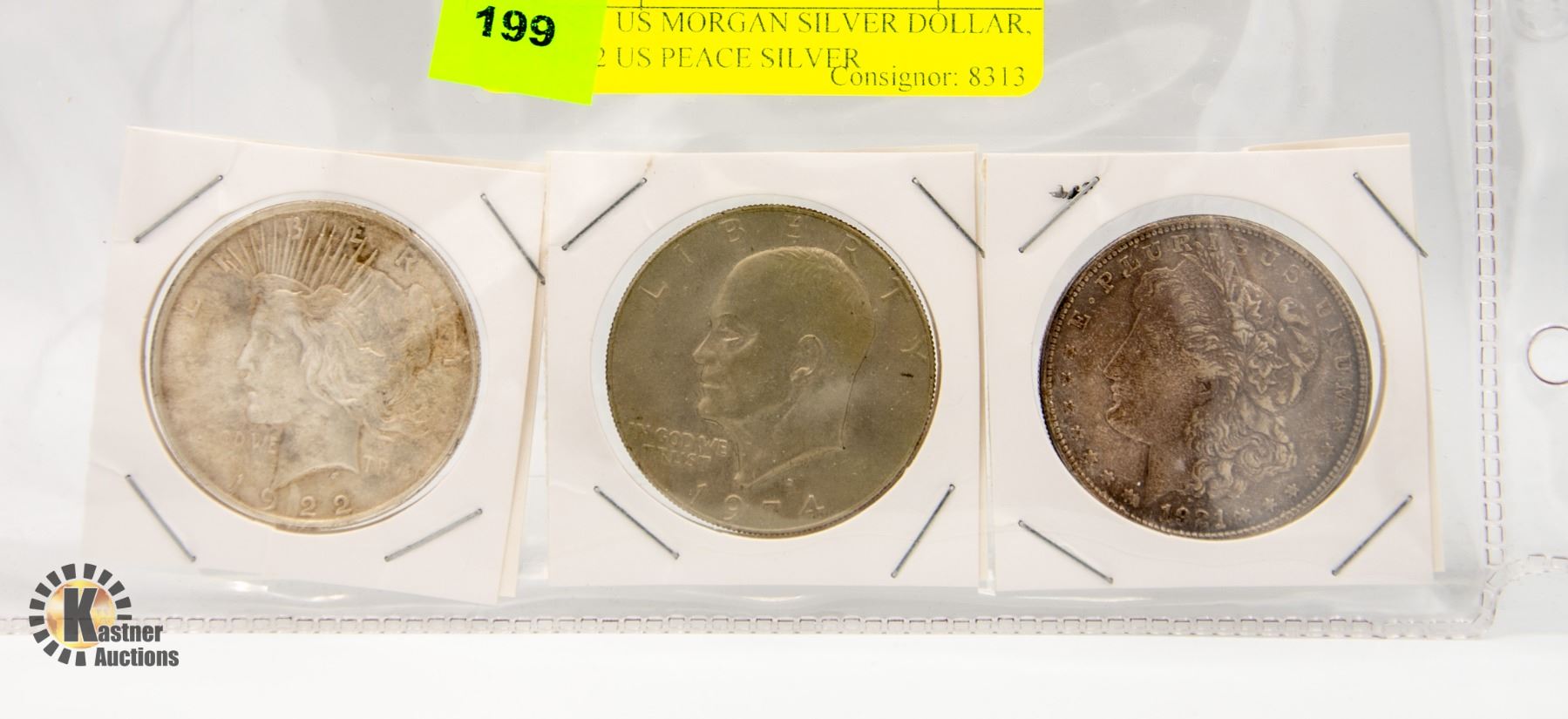 1921 US MORGAN SILVER DOLLAR, 1922 US PEACE SILVER