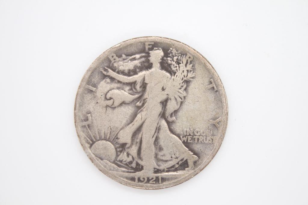 A Key date coin 1921 WALKING LIBERTY HALF DOLLAR. A strong full rim on this tough walker.