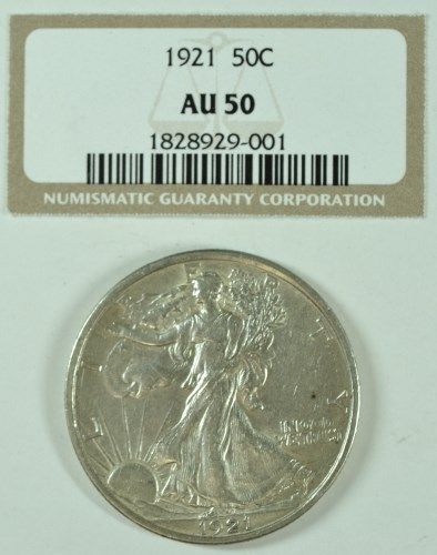1921 WALKING LIBERTY HALF DOLLAR, ( NGC AU-50 ) CERT WITH COIN, VERY VERY RARE!