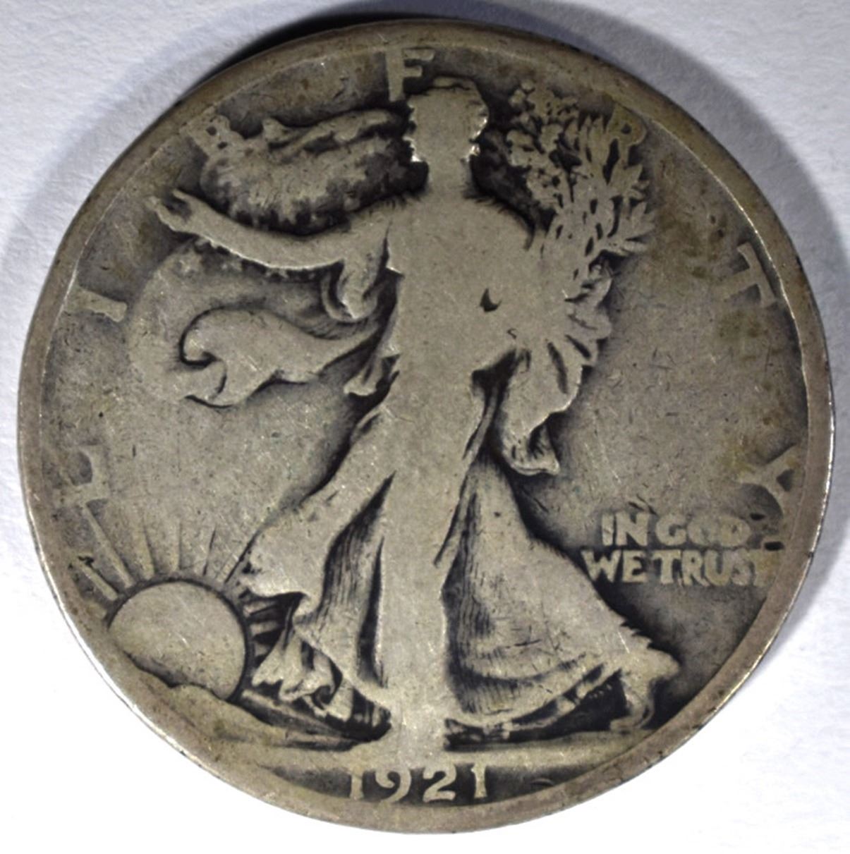 1921 WALKING LIBERTY HALF DOLLAR, VG/FINE SCARCE!