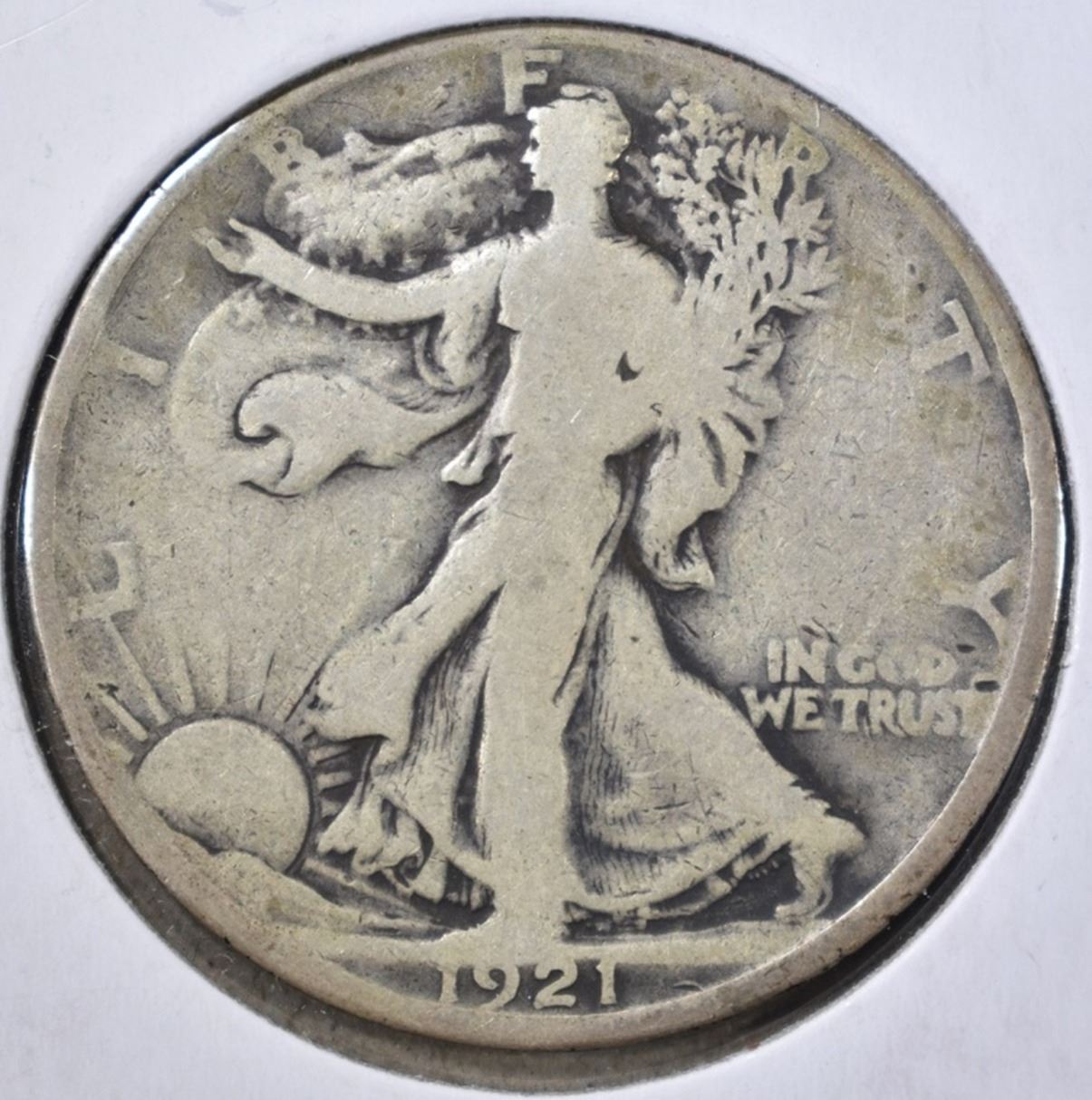 1921 WALKING LIBERTY HALF DOLLAR, VG/FINE SCARCE!