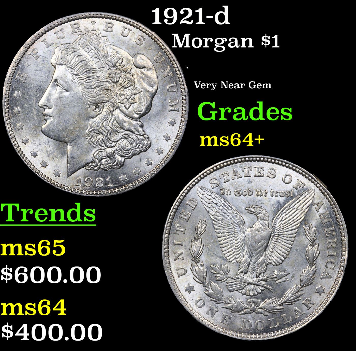 1921-d Morgan Dollar $1 Grades Choice+ Unc.