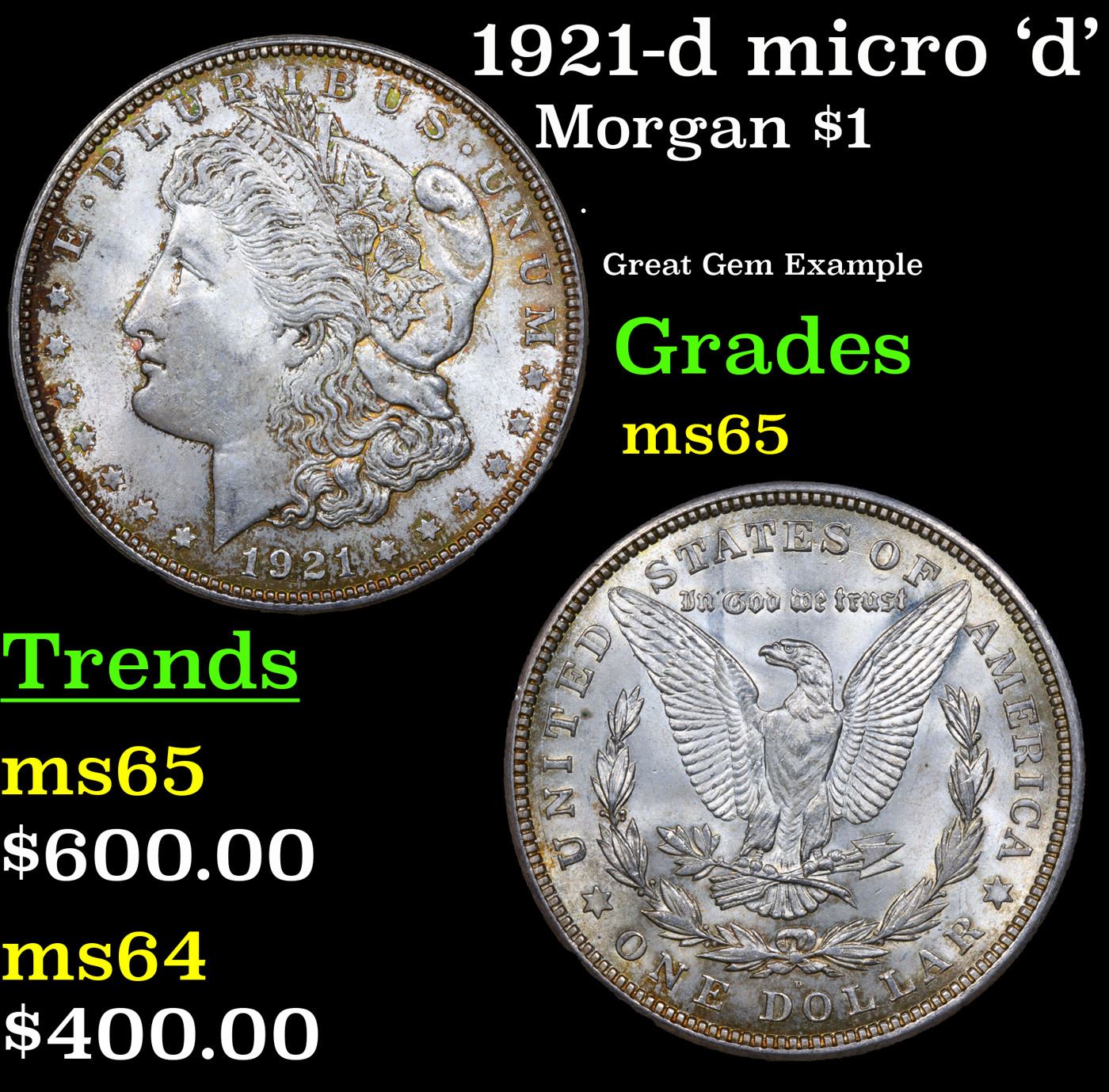 1921-d micro 'd' Morgan Dollar $1 Grades GEM Unc.