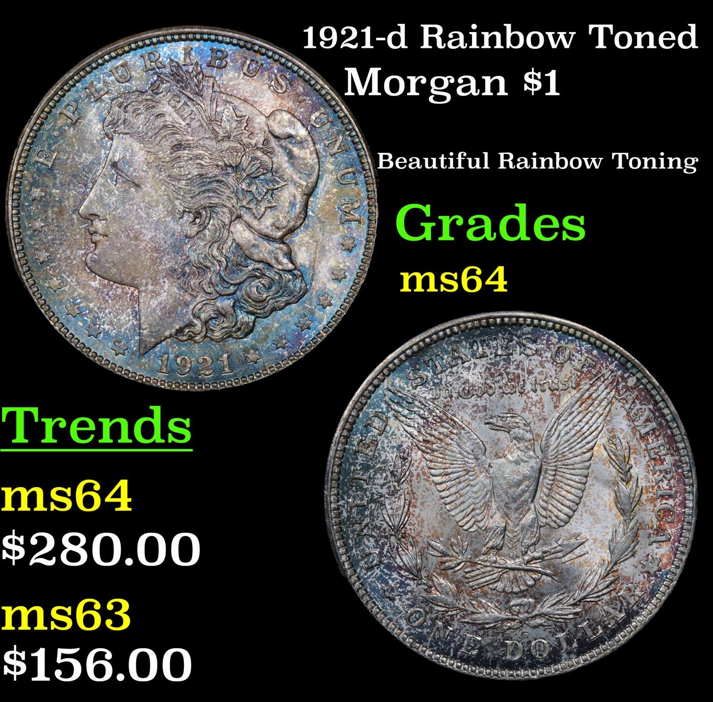 1921-d Rainbow Toned Morgan Dollar $1 Grades Choice Unc.