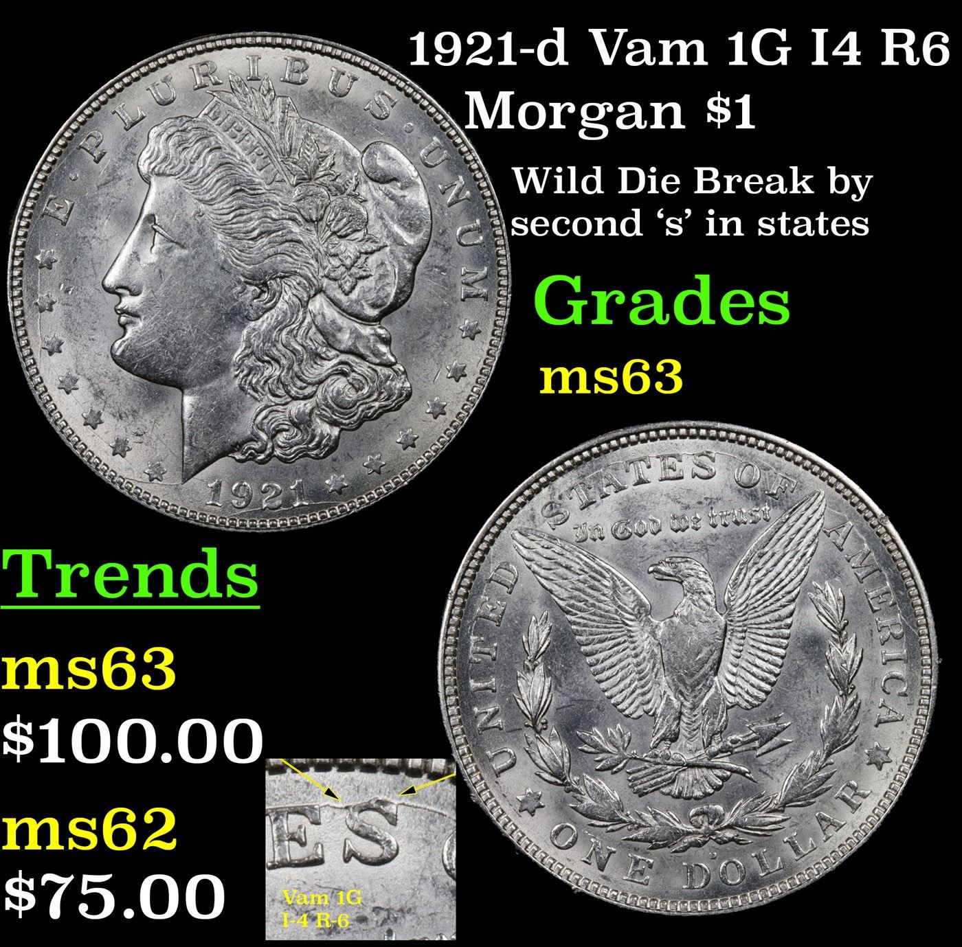 1921-d Vam 1G I4 R6 Morgan Dollar $1 Grades Select Unc.