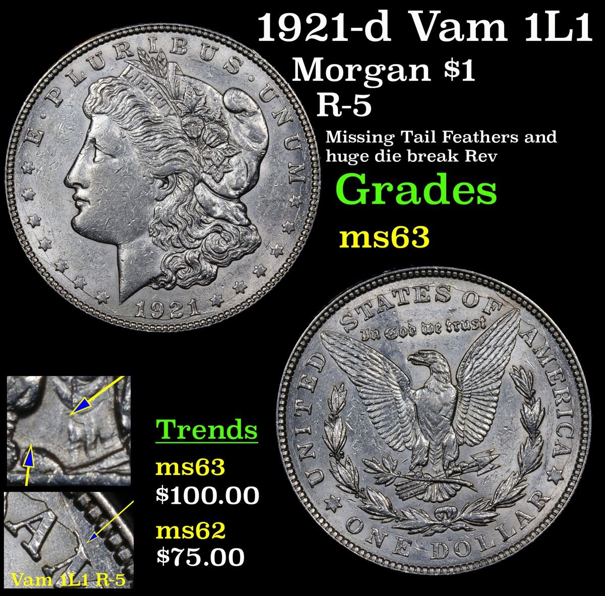 1921-d Vam 1L1 Morgan Dollar $1 Grades Select Unc. A Corey's Pick
