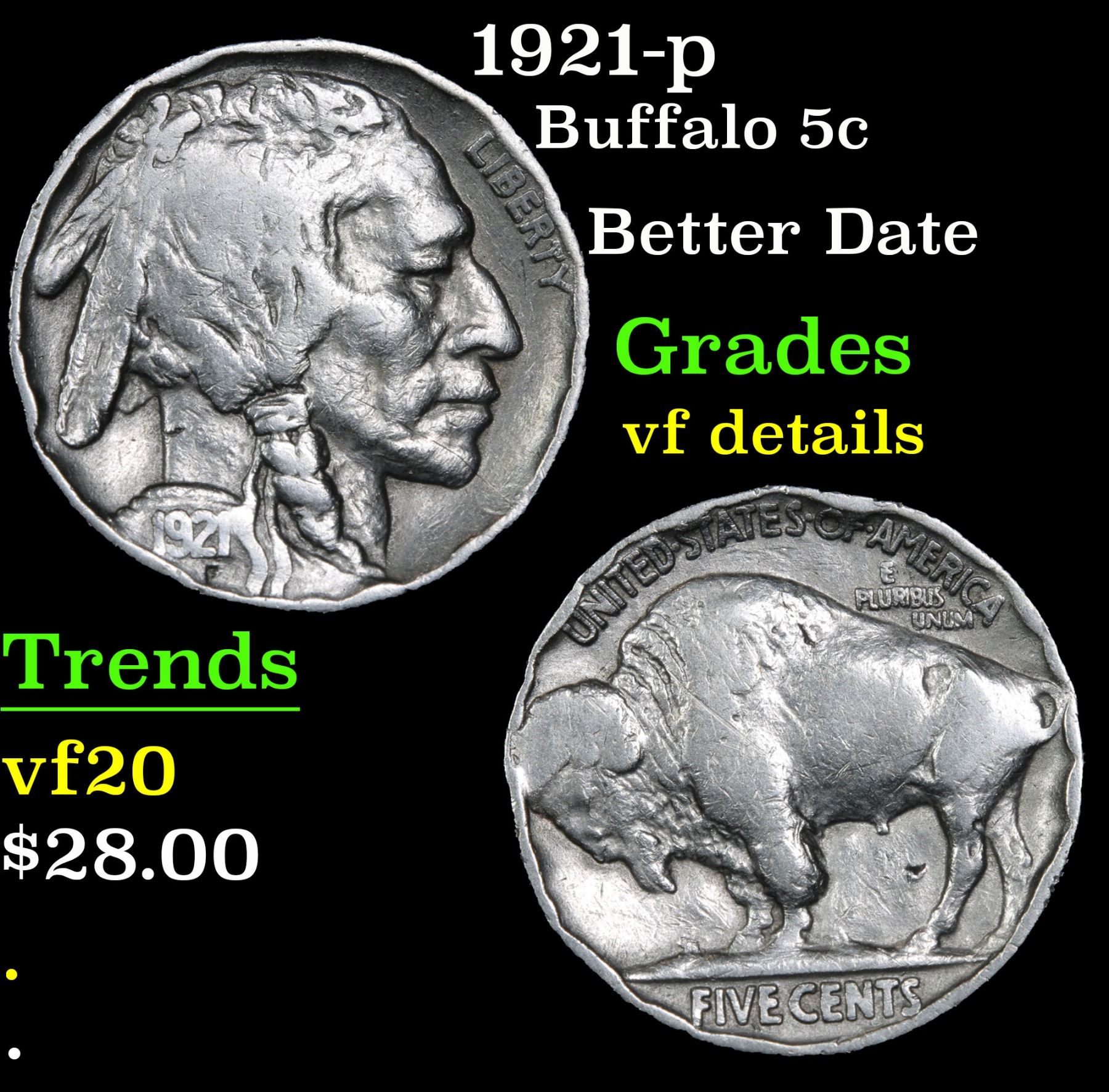 1921-p Better Date . Buffalo Nickel 5c Grades vf details.