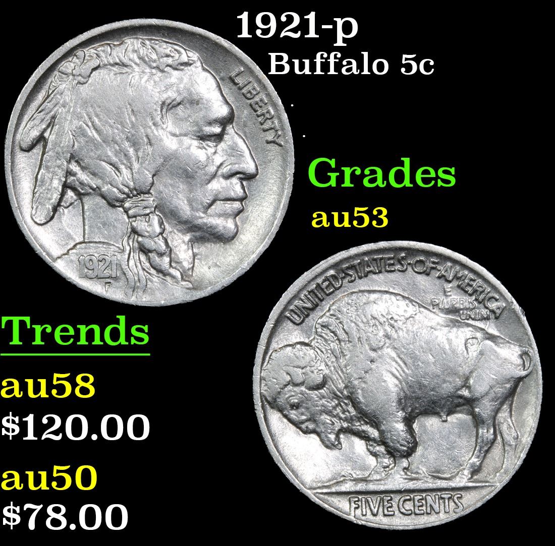 1921-p Buffalo Nickel 5c Grades Select AU.