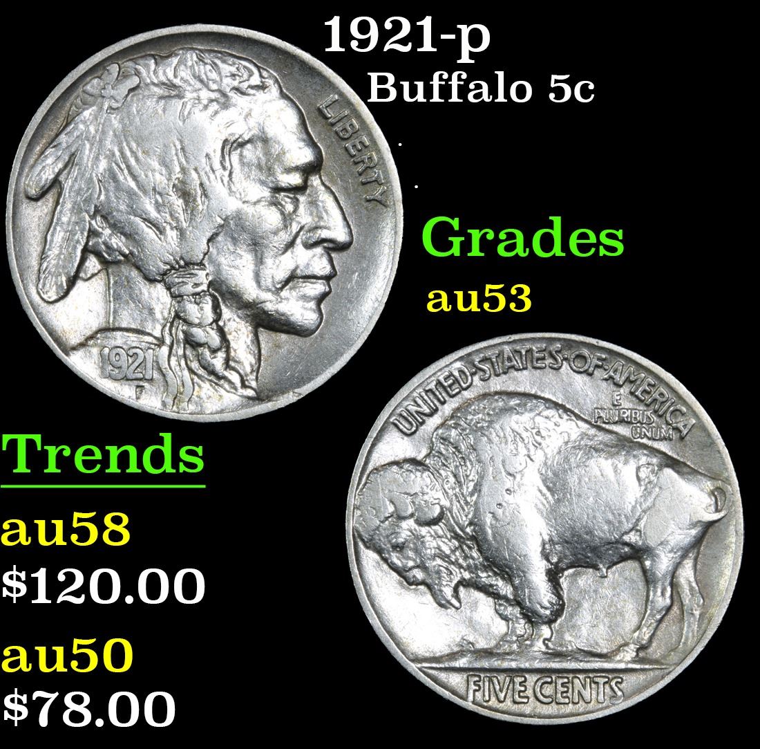 1921-p Buffalo Nickel 5c Grades Select AU.