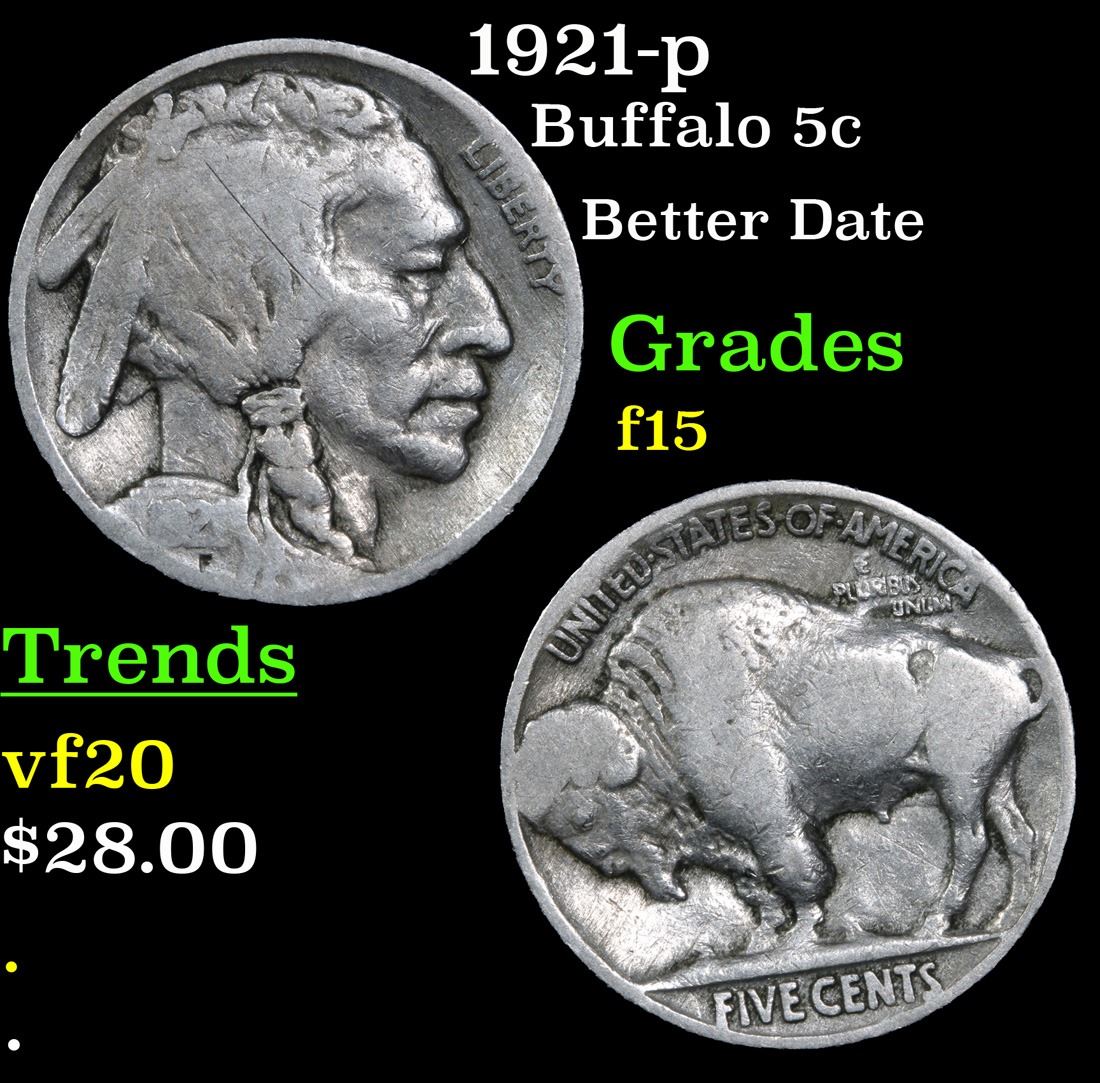 1921-p Better Date . Buffalo Nickel 5c Grades f+.
