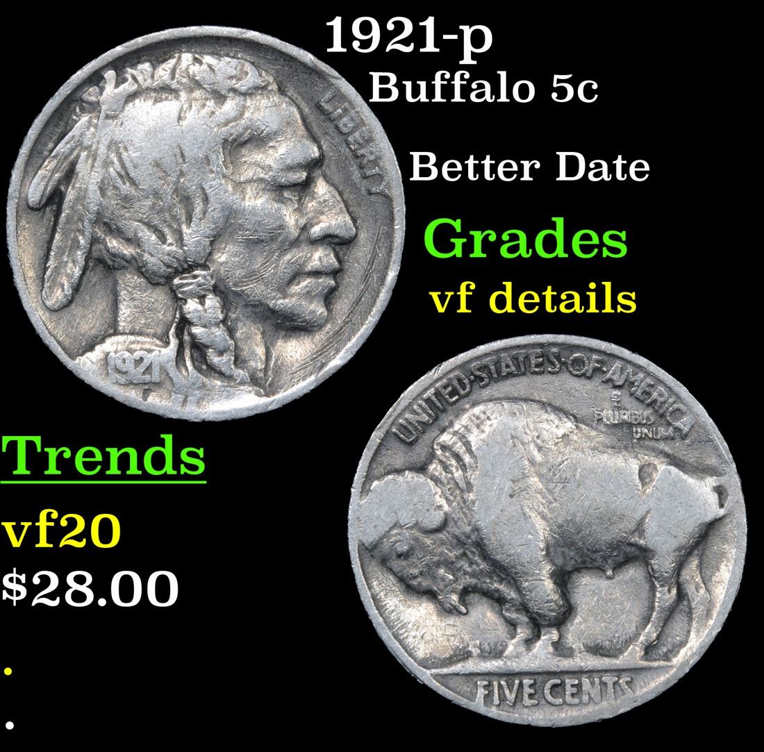 1921-p Better Date . Buffalo Nickel 5c Grades vf details.