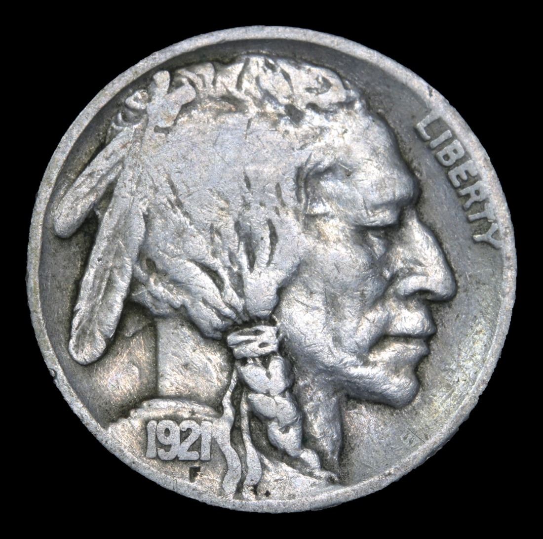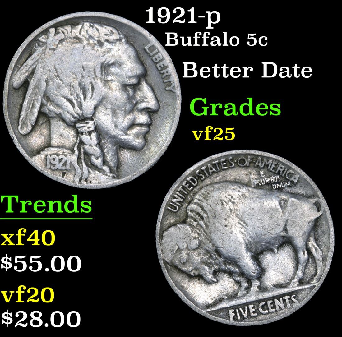 1921-p Better Date . Buffalo Nickel 5c Grades vf+.