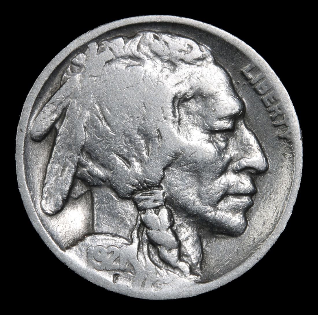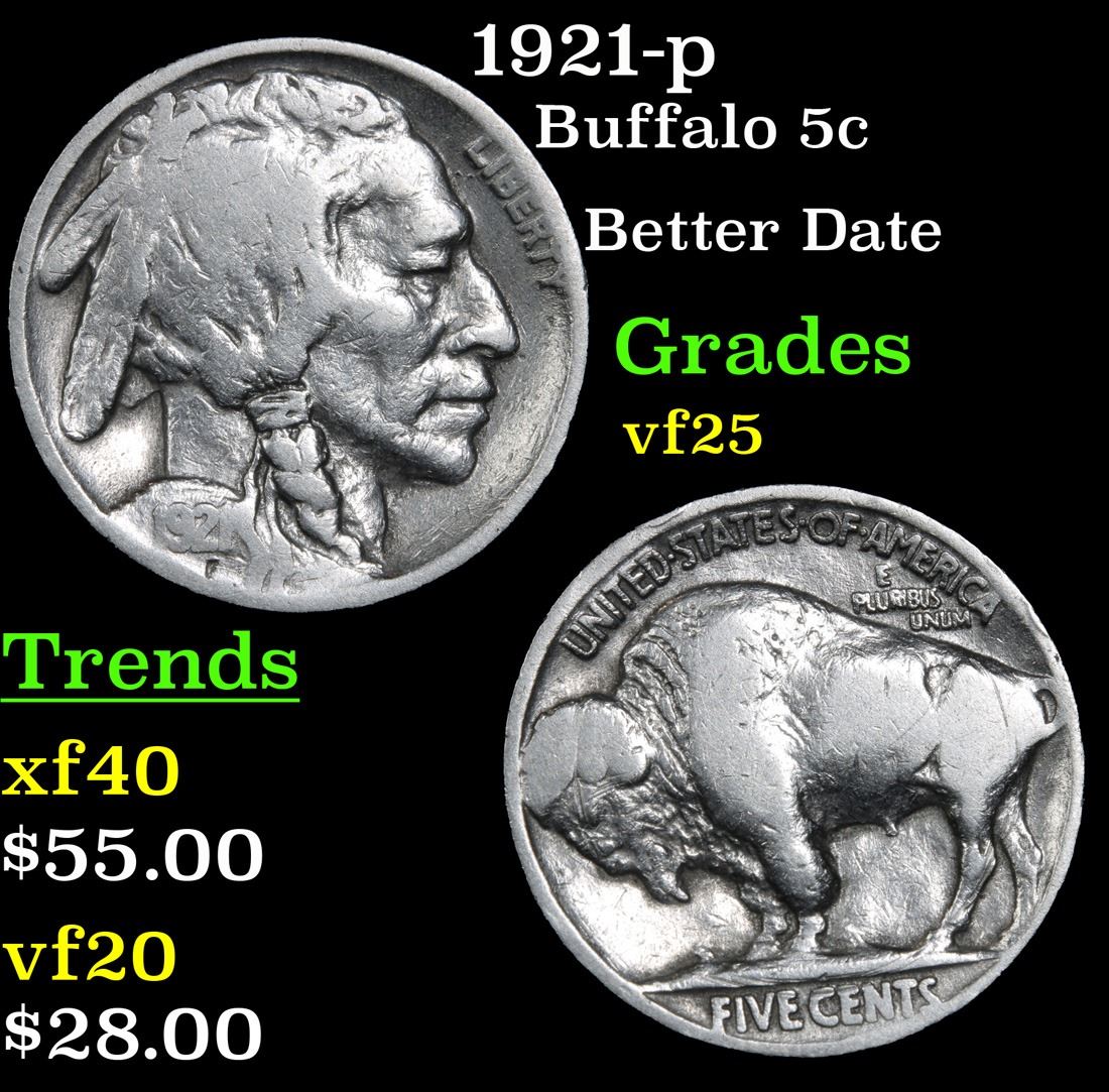 1921-p Better Date . Buffalo Nickel 5c Grades vf+.