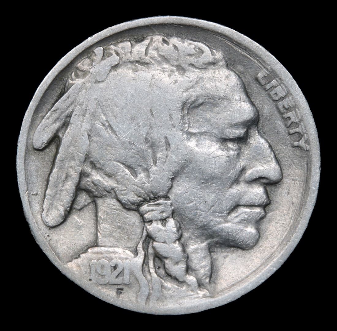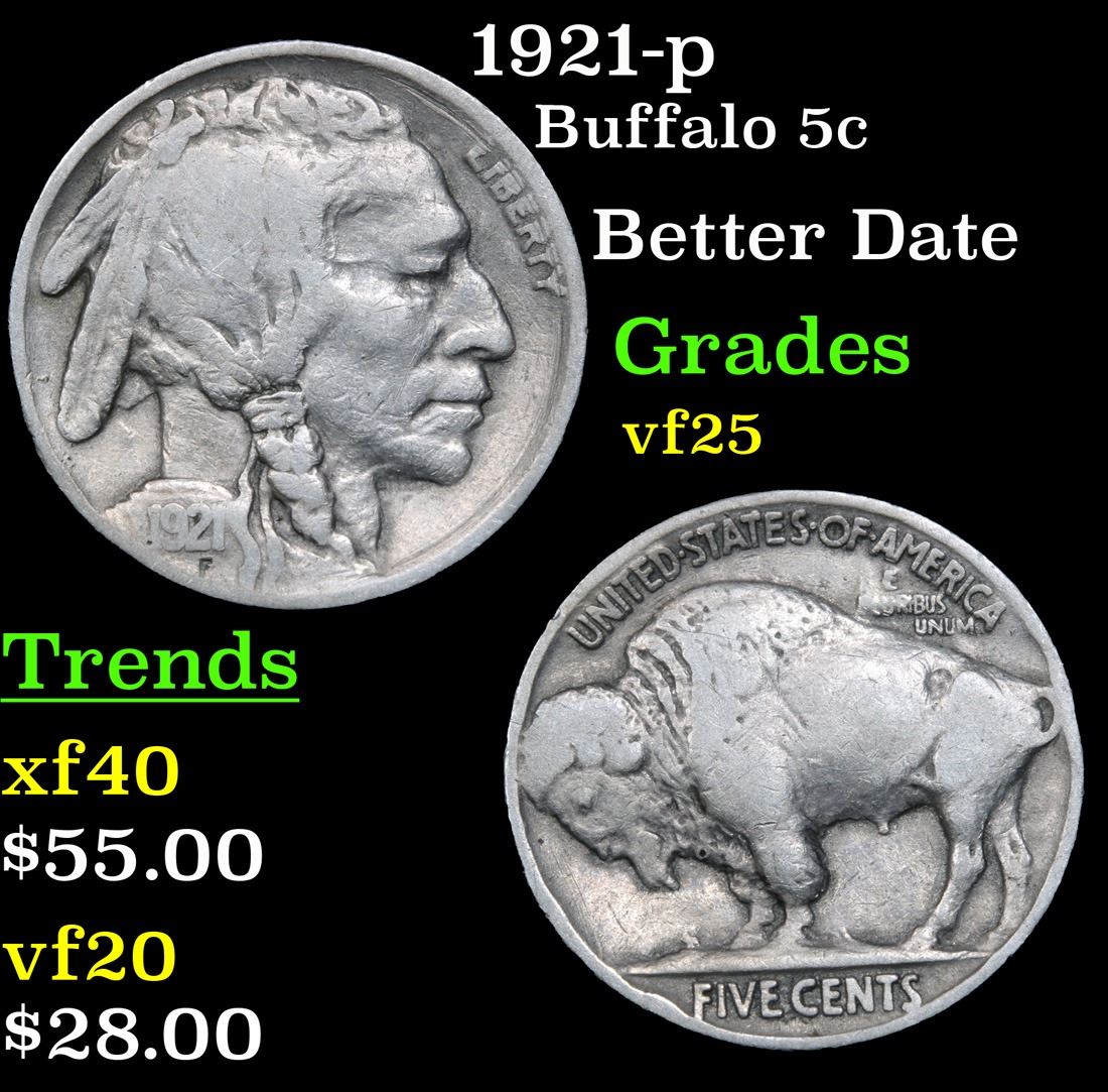 1921-p Better Date . Buffalo Nickel 5c Grades vf+.