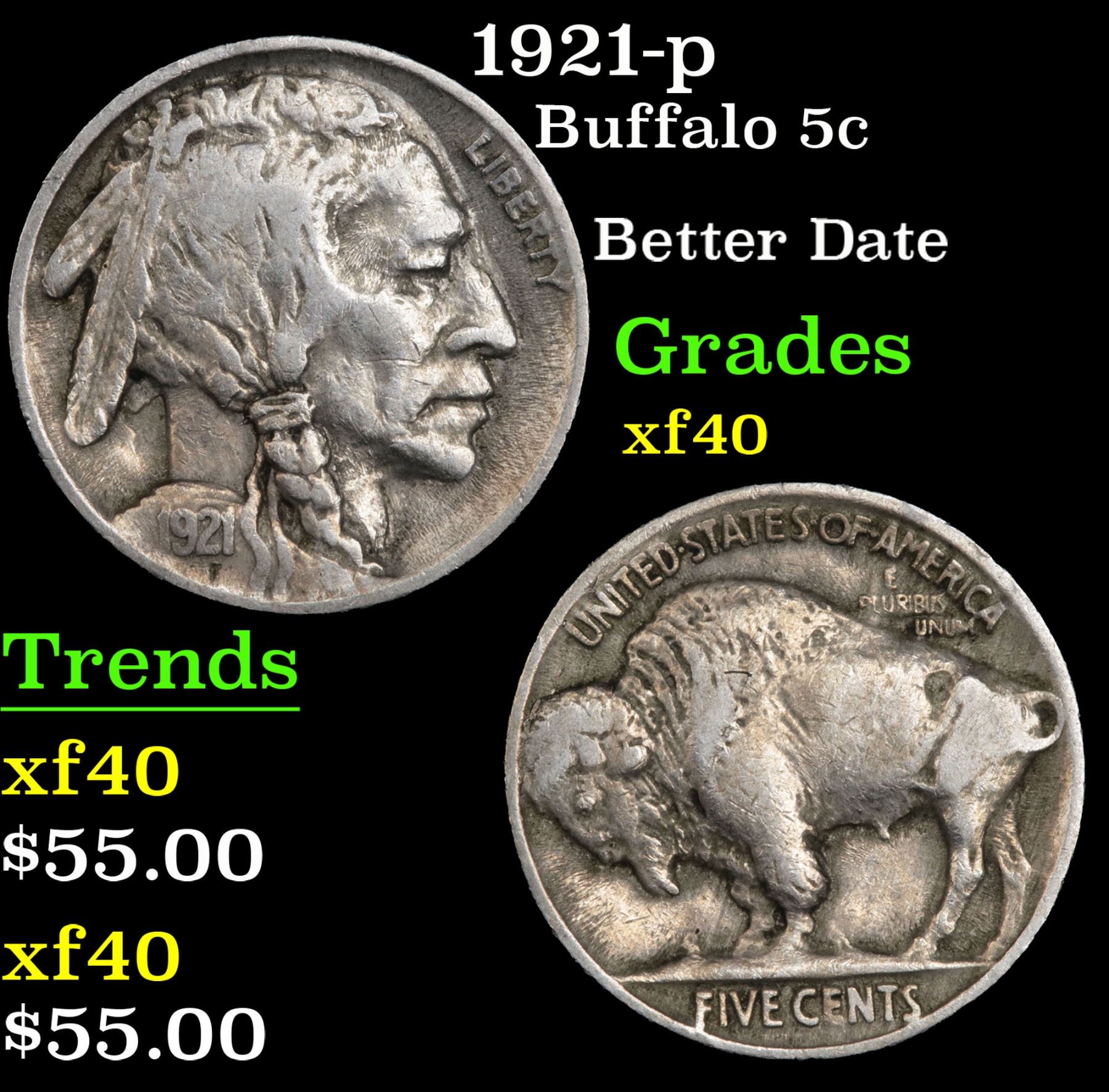 1921-p Better Date . Buffalo Nickel 5c Grades xf.