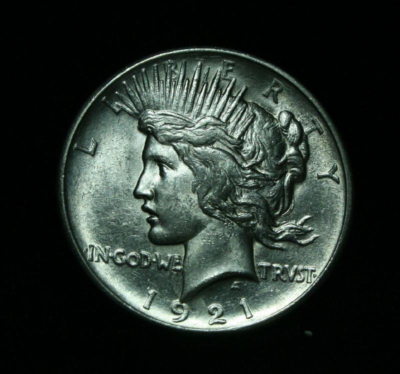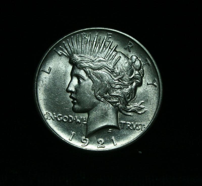 A well Struck 1921 Peace Dollar, nice luster. Good eye appeal Coin World's Coin Values lists ms64 at $750 and The Wholesale Greysheet lists ms64 at $600. Estimated Value $650