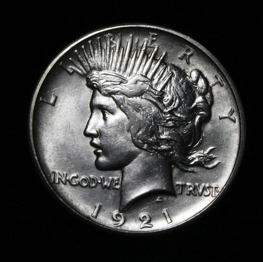 A well Struck 1921 Peace Dollar, nice luster. Good eye appeal Coin World's Coin Values lists ms64 at $750 and The Wholesale Greysheet lists ms64 at $600. Estimated Value $650