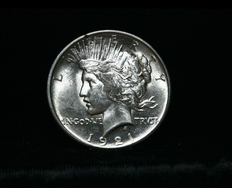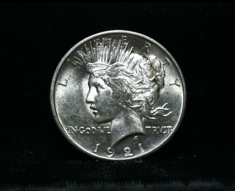 An attractive 1921 High Relief Peace Dollar, nice luster. Nice Light Toning and Good Strike. NGC's Price Guide lists ms64 at $730 and The Wholesale Greysheet lists ms64 at $600. Estimated Value $650