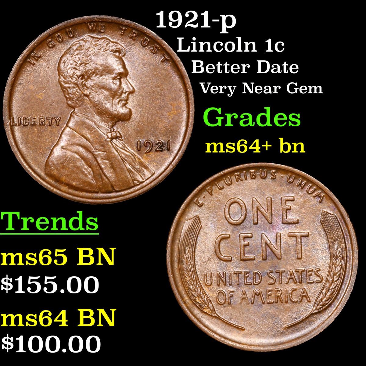 1921-p Better Date Very Near Gem Lincoln Cent 1c Grades Choice+ Unc BN. With an original mintage of over 39 million pieces, PCGS estimates that only 1000 survive in ms65 or better.
