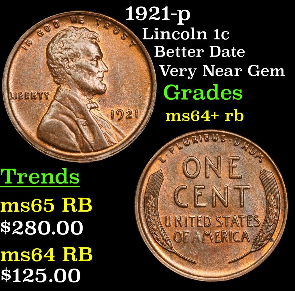 1921-p Better Date Very Near Gem Lincoln Cent 1c Grades Choice+ Unc RB.